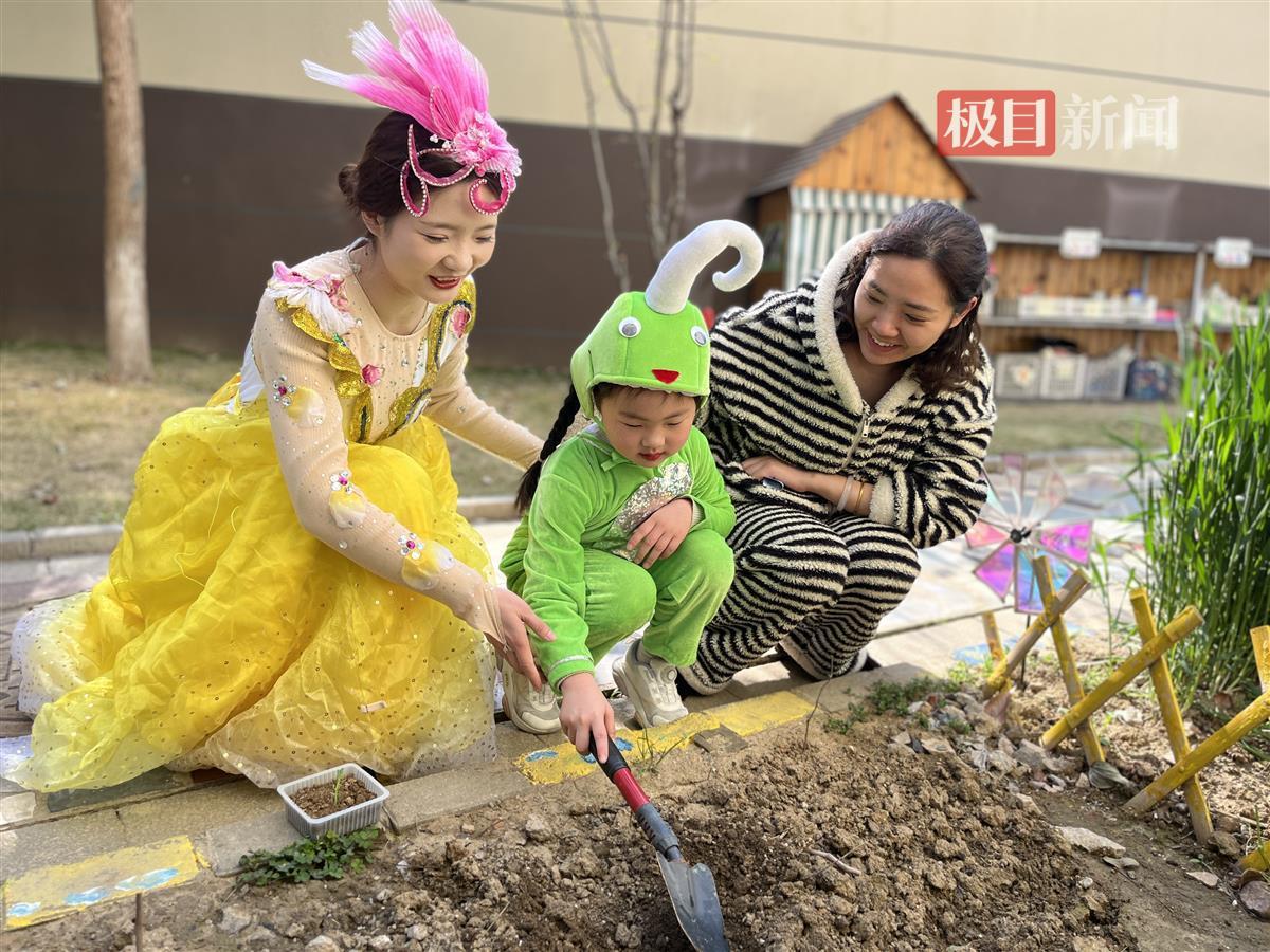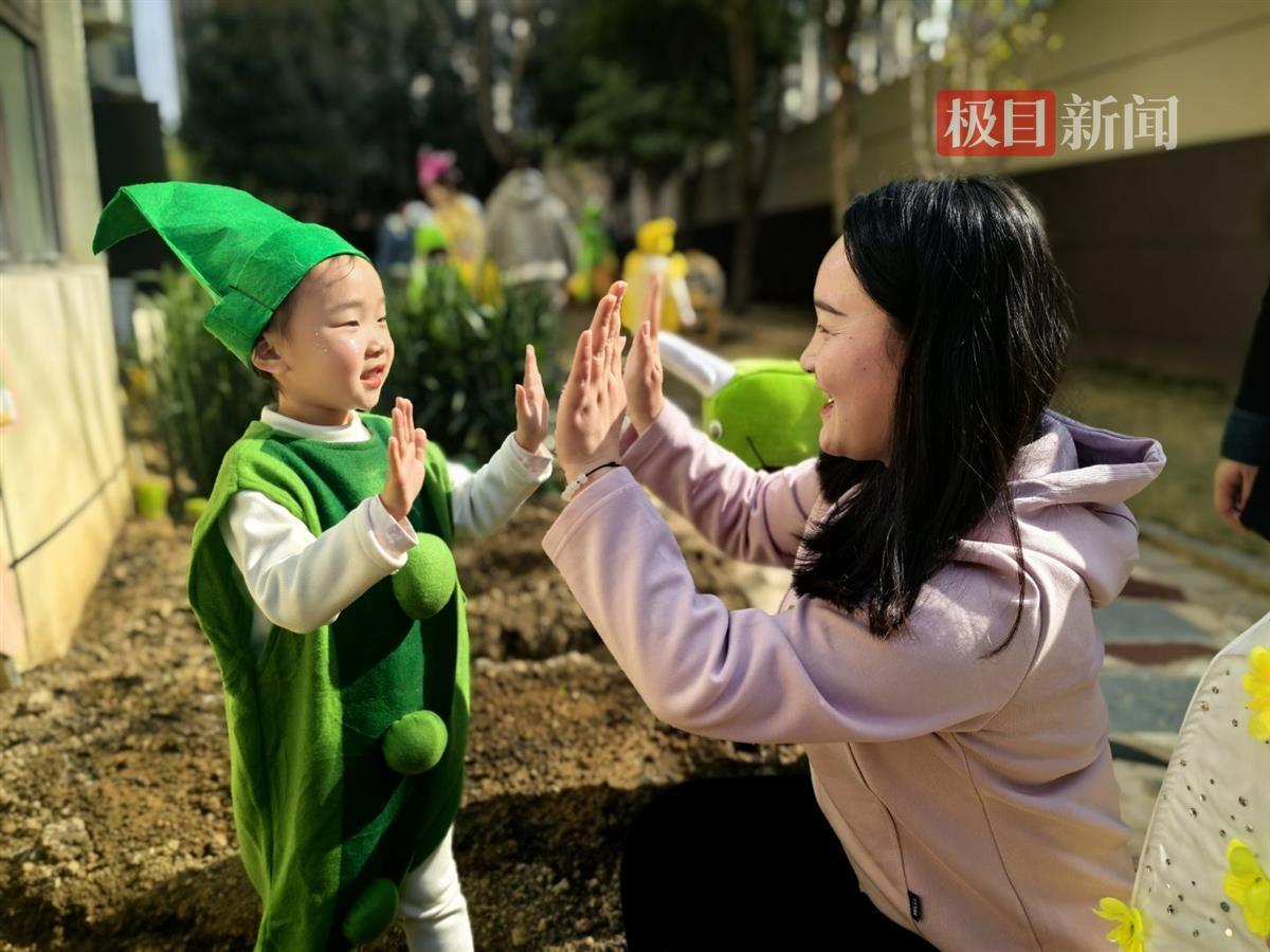 演出结束,萌娃在家长和老师的陪同下,走进大自然,翻土播种,体验春耕,分享种植成果。“这是我种的小豌豆,等它长大了,我要把豌豆分享给家人、老师还有好朋友吃。”大三班的游祺宁小朋友兴奋地捧着自己的成果说道。大一班鲁知悦的爸爸向记者分享道:“看到孩子种植的蒲公英,从一颗颗小小的种子长出嫩绿的新芽,在这期间,孩子们亲近泥土、走进自然,动手能力和责任心都有了很大提升,我很自豪。”