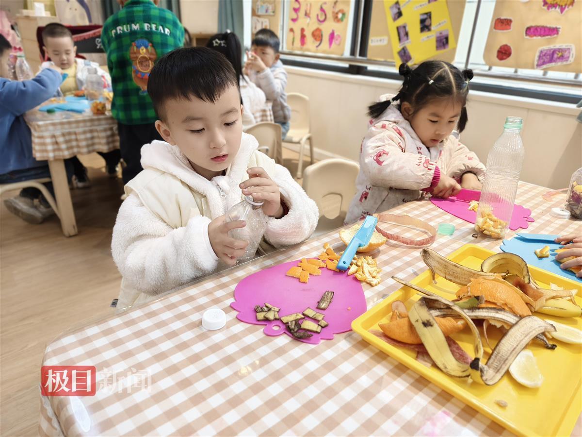 “从选种、种植、施肥,幼儿园每个小朋友都积极参与,尽心呵护自己的成果。”青禾幼儿园园长胡婷介绍,小班的萌娃们将种子种植过程中遇到的问题和烦恼都画了下来,形成了一幅美丽的画卷;中班的孩子们用果皮制作有机肥,观察蔬菜发芽的秘密,对比实验土培和水培的育苗方式,在探索中成长;大班的小朋友则充分发挥想象,制作了土壤湿度传感器、自动灌溉洒水机、“鱼菜共生”水循环系统等,将科技与自然巧妙融合。
