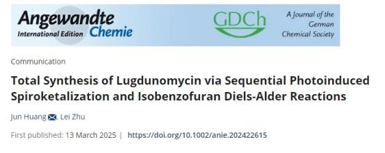 近日,南华大学化学化工学院黄俊教授团队在化学领域顶级期刊Angew. Chem. Int. Ed.(影响因子16.1,中国科学院一区)发表了题为"Total Synthesis of Lugdunomycin via Sequential Photoinduced Spiroketalization and Isobenzofuran Diels-Alder Reactions"的研究论文。