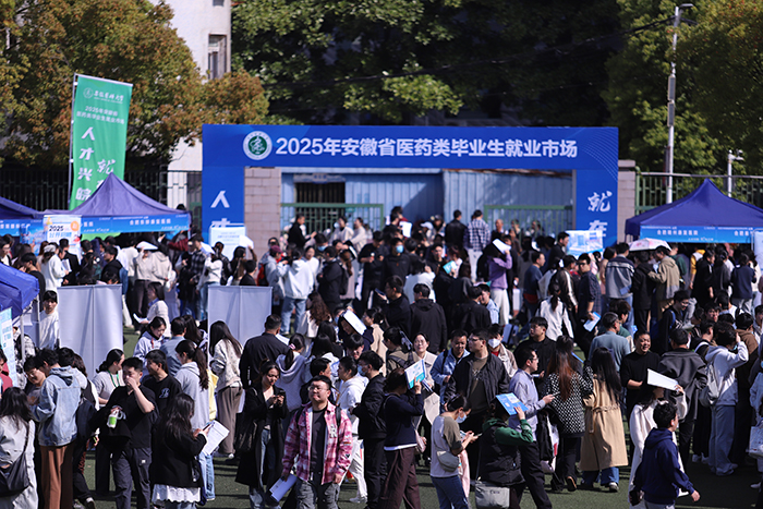 此次就业市场由安徽省教育厅、省卫生健康委员会主办,安徽医科大学承办,这也是该校连续第25次承办全省医药类综合招聘活动。