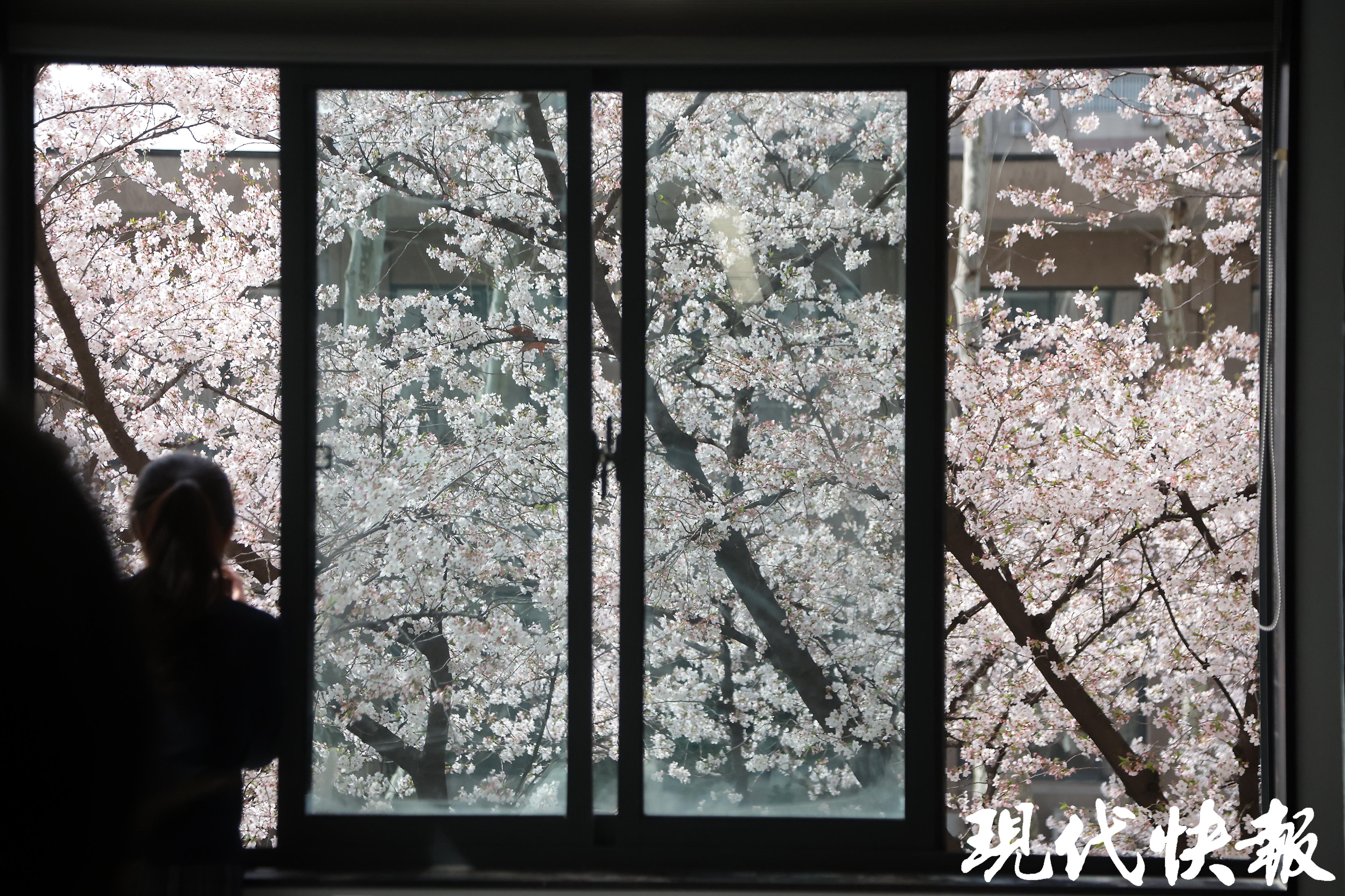 东南大学四牌楼校区建筑学院的教室窗外,满树樱花在风中摇曳,飘飘洒洒的花瓣散落在地上,装点了一整个春天的浪漫。