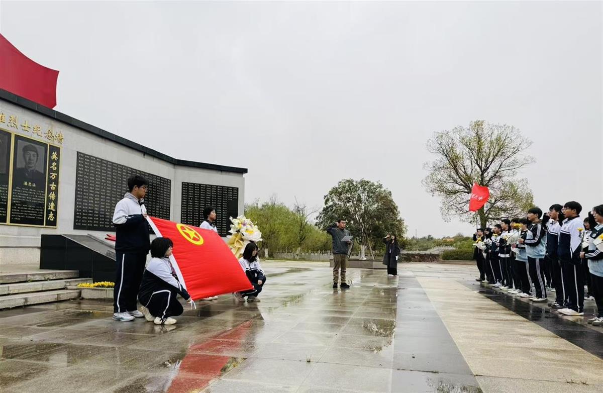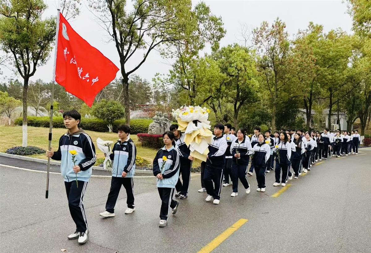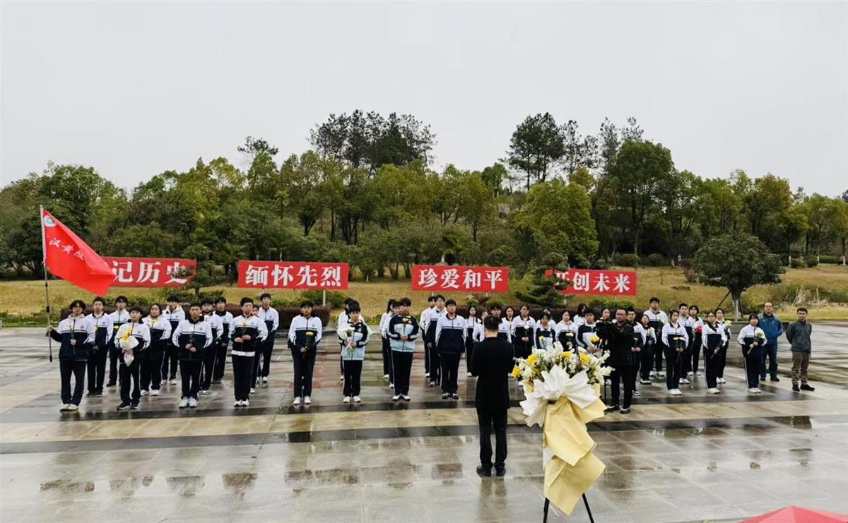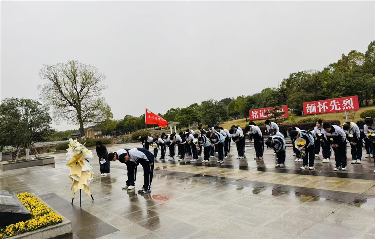3月28日清晨,武汉市黄陂区第六中学60余名师生乘车前往革命烈士纪念园,绿树苍翠,细雨如丝,师生们整齐列队,手持鲜花,缓步前行,肃立在烈士纪念碑前。