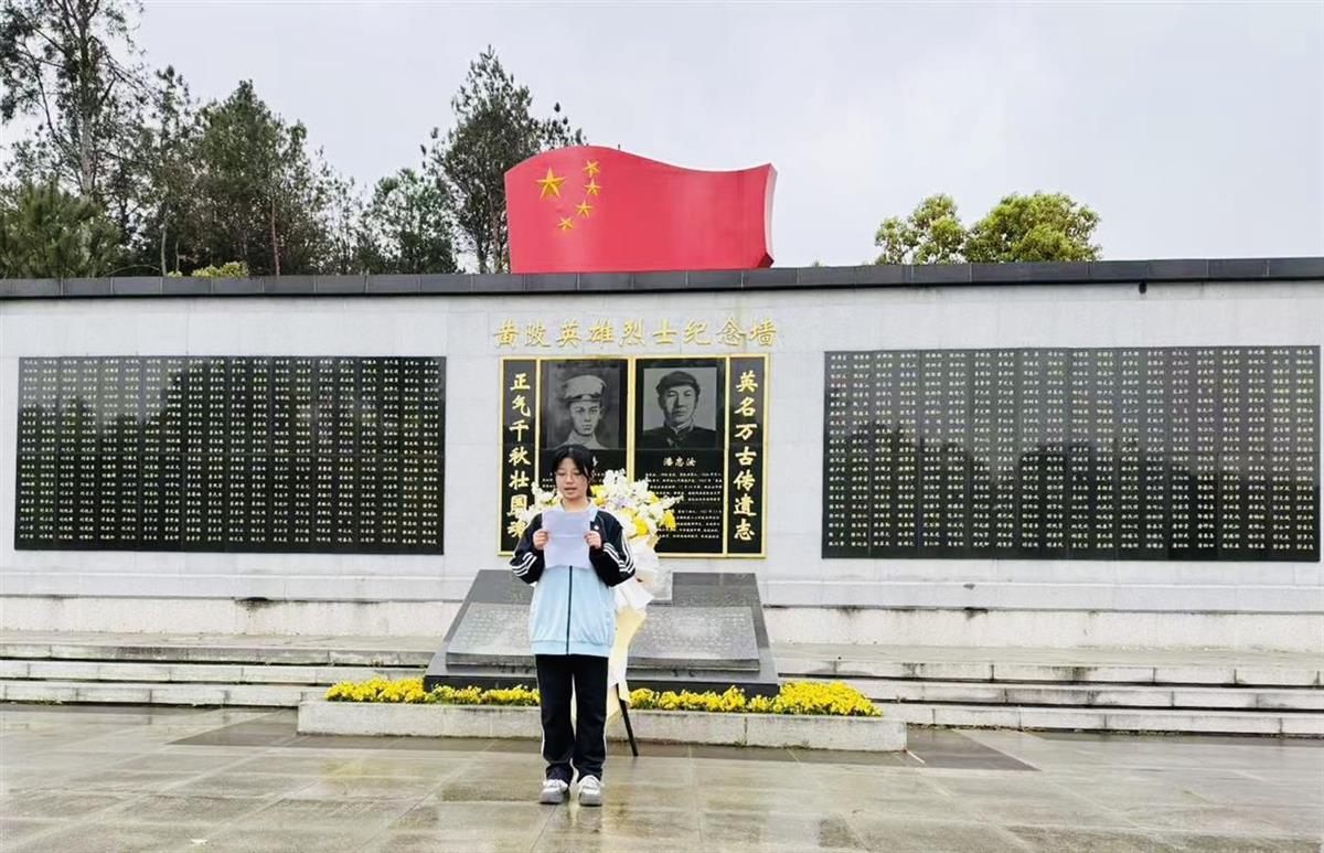 仪式结束后,师生们绕行烈士纪念墙,认真瞻仰革命英烈名录,轻拭碑文上的雨滴,为英烈系上红丝带。纪念墙上镌刻的每一个名字,都承载着一段热血青春。同学们感慨:“21岁牺牲的家乡英烈,和我们年龄相仿,他的勇气让我明白,英雄从未远去,精神永驻心间。”