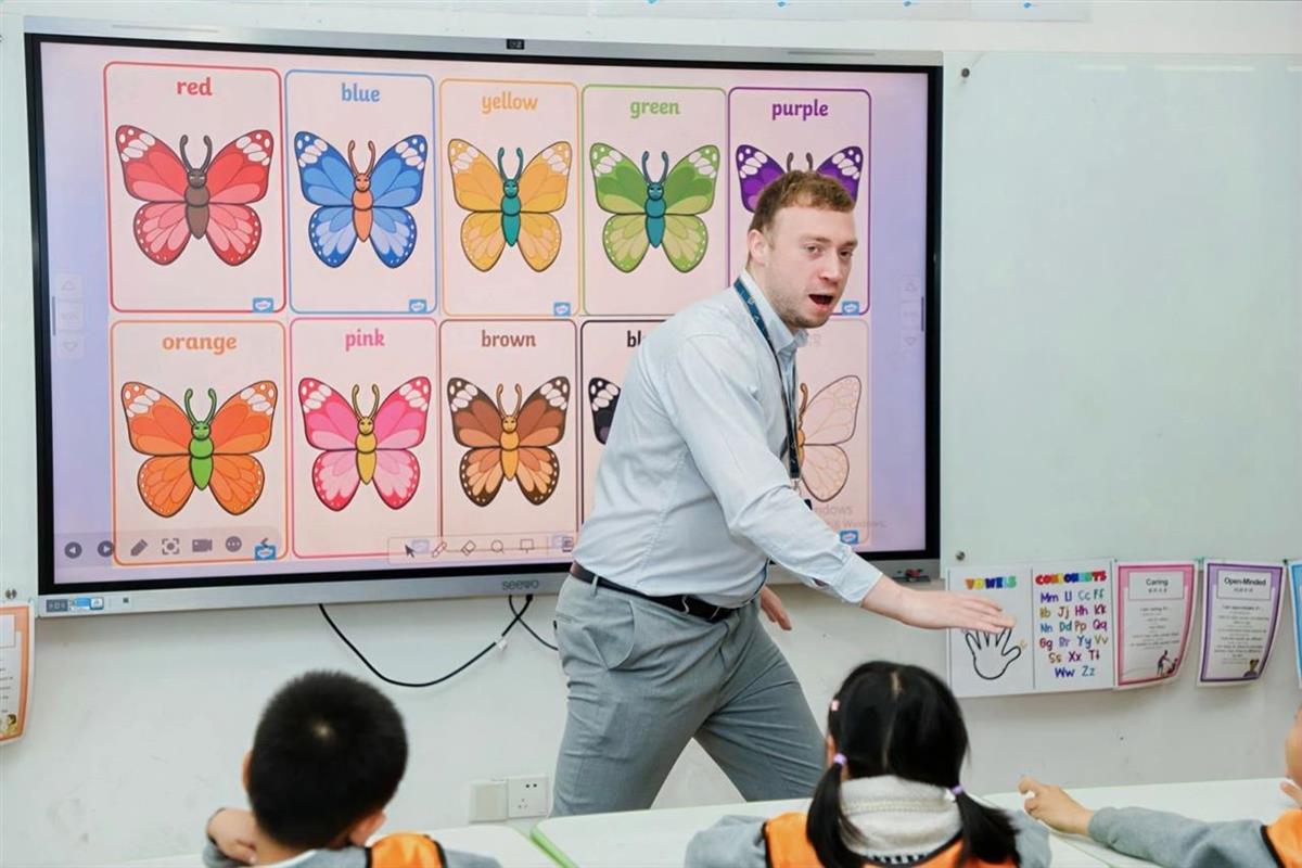 “Red! Yellow! Blue! Green!”清脆的童声在明亮的教室里此起彼伏,二十多双眼睛紧盯着屏幕上五彩斑斓的蝴蝶。这是武汉爱莎学校的一堂英语课,老师Daniel正带领孩子们开启一场奇妙的色彩之旅。
