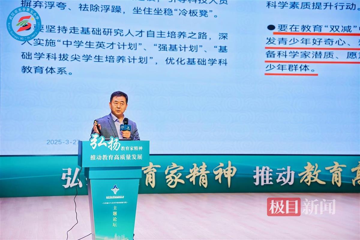 3月27日,教育部“国培计划”第二十期全国小学优秀校长高级研究班学员齐聚武汉光谷参加“弘扬教育家精神,推动教育高质量发展——五育融合与未来学校创新实践”主题论坛,活动现场,极目新闻记者专访了教育部小学校长培训中心常务副主任、北京师范大学校长培训学院院长陈锁明。