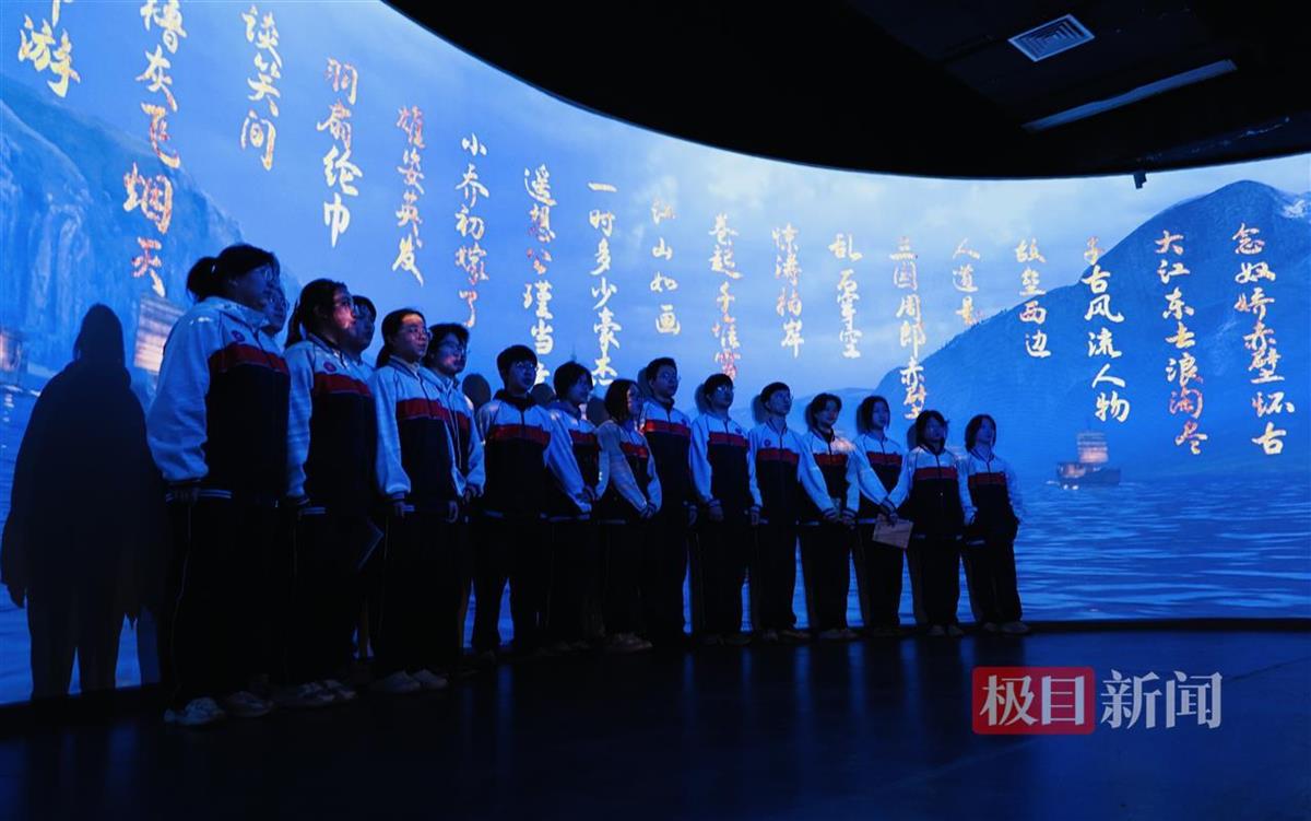 当展厅灯光渐暗,3D全息影像将赤壁江涛搬进现代展厅,师生们伫立“江岸”,湖北省作家协会会员、该校语文教师胡继明老师以饱满的热情带领学生诵读《念奴娇·赤壁怀古》,其铿锵有力的声音与恢宏的诗词意境相融,令全场沉浸于豪放词风的震撼之中,现场掌声雷动。胡老师感慨:“此次活动不仅让同学们深受苏轼人格精神的濡染,更在诗词的韵律与历史的回响中,培养了他们的家国情怀与坚韧品格。”
