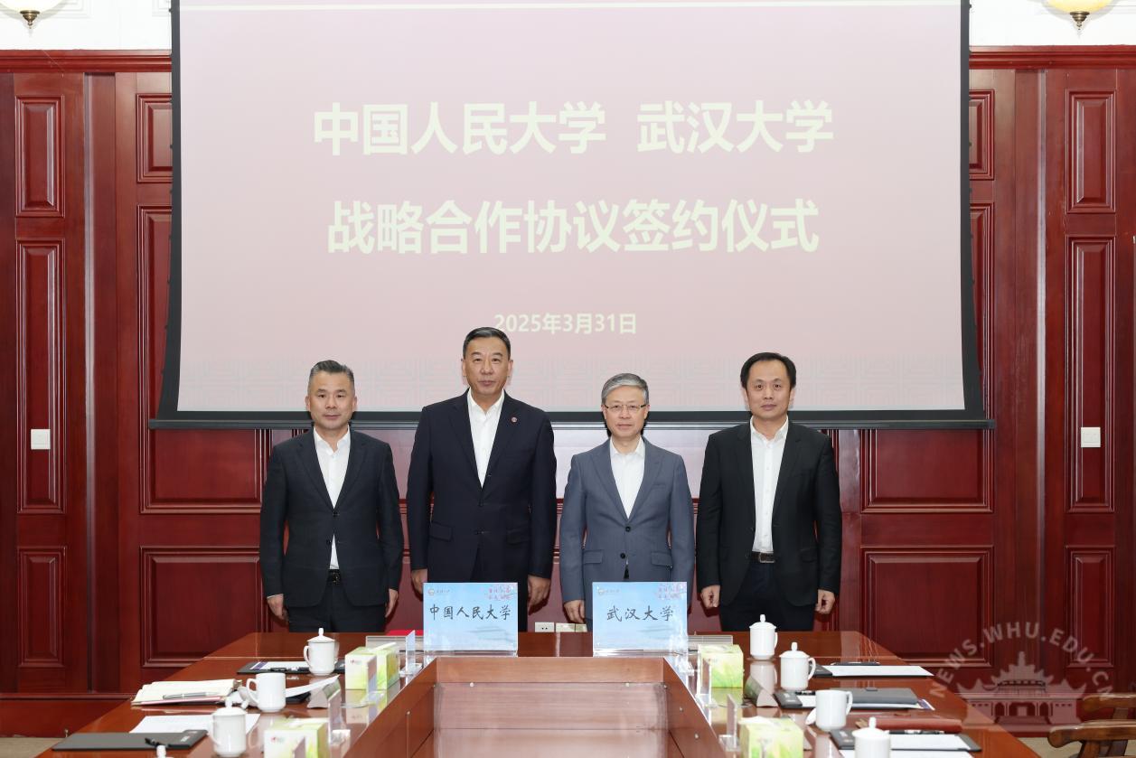新闻网讯(记者赵冀帆实习生张雨)3月31日,武汉大学与中国人民大学签署战略合作协议。武汉大学党委书记黄泰岩,党委常委、副校长陆伟,中国人民大学党委书记张东刚,党委常委、副校长郑新业,武汉大学校长助理陈慧东,校长助理、党政办公室主任徐东兴等出席签约仪式。陆伟主持签约仪式。