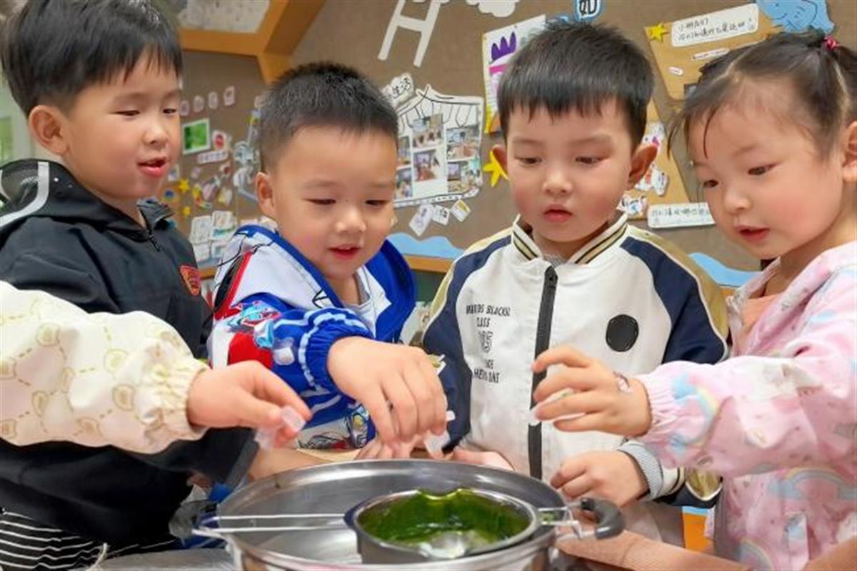 “老师快看,我的艾草粉在跳绿色芭蕾!”3月28日上午,武汉市青山区第一幼儿园中四班的教室里,一群萌娃在老师的带领下围坐在操作台前,开启“清明艾草手工皂”制作之旅。