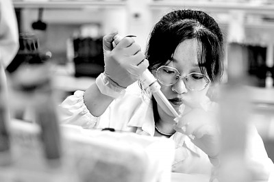 上海海洋大学水产养殖专业的博士研究生王贺在导师指导下研究遗传育种。新华社发