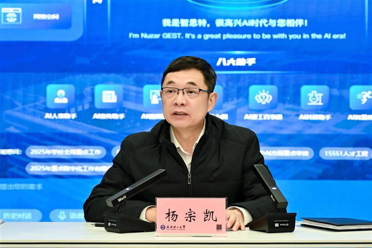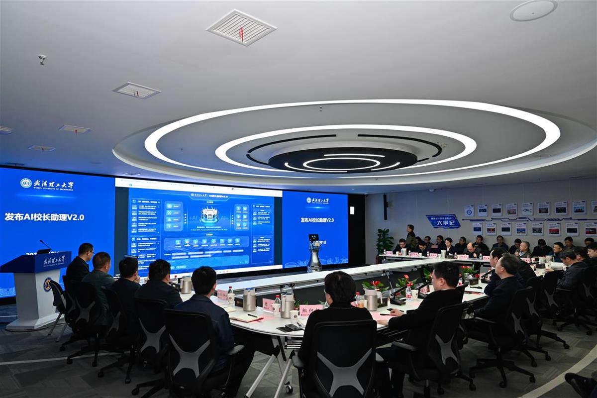 当人工智能浪潮席卷全球教育领域,大学校长如何驾驭数智化浪潮,开启校园治理新范式?4月1日上午,在武汉理工大学召开的网络安全与信息化工作会议现场,当大屏幕上的“AI校长助理2.0”被唤醒,校长杨宗凯发出首条指令:“请分析2025年世界数字教育大会中学校的重点任务及最新进展情况”,话音刚落,对话框便如神经网络般思考开来,精准勾勒出未来工作计划,出色完成校长“超级谋士”的上岗第一考。