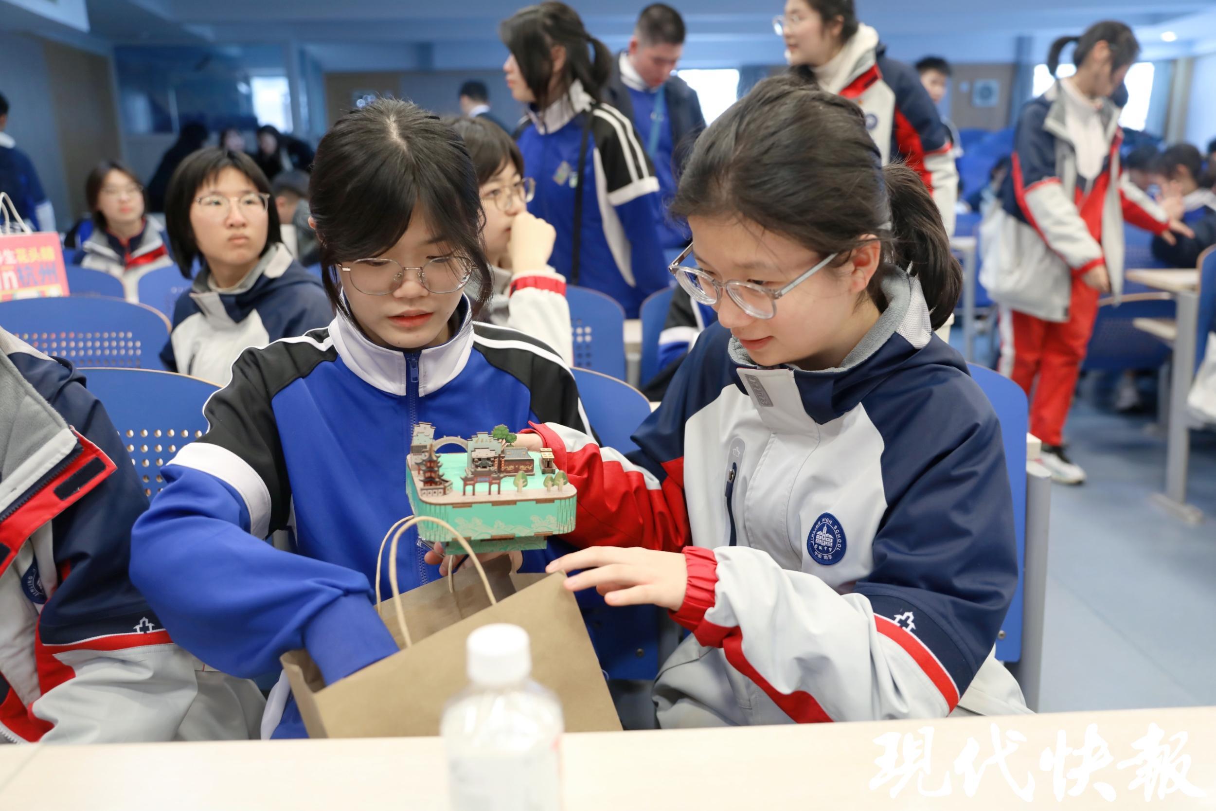 “初次见面,很高兴认识你!”高二(12)班的金博轩和冯瑞雪同学,特地准备了带有南京特色的小礼物,她们也收到了来自结对同学爱意满满的祝福和小礼物。春日的校园里,金中学子带领结对学生参观校园、共进午餐、互换礼物、合影纪念,临别之际相约保持联系,收获了一份真挚的友谊。