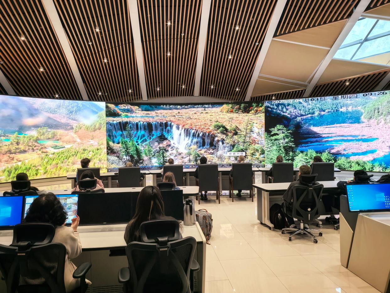 在九寨沟智慧中心和展示中心的弧形巨幕前,九寨沟独特的地质演化历史和震后生态修复历程通过技术手段生动呈现在了师生眼前。当实时监测系统显示景区实时游客量和各区域环境监测情况时,有学生感慨道:“这里的生态智慧让每个数字都有了生命温度。”