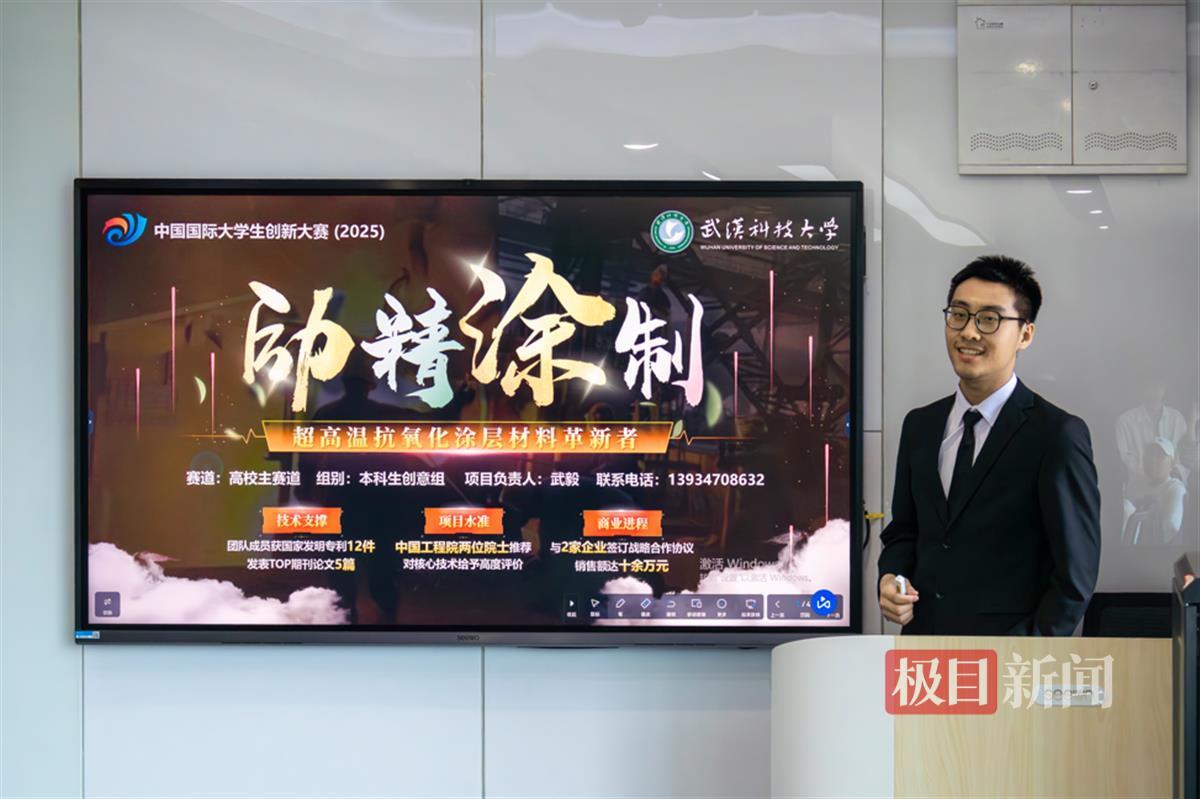 活动现场,创新创业基地的同学们带来了项目路演,将自己的创业理念和相关成果展示了出来。高温环境使工业零件使用寿命减少、维护成本增加,给传统的涂层材料的使用带来了挑战。武毅及团队耗时三年研发的超高温抗氧化涂层材料能延长高温工业设备使用寿命,实现降本增效。