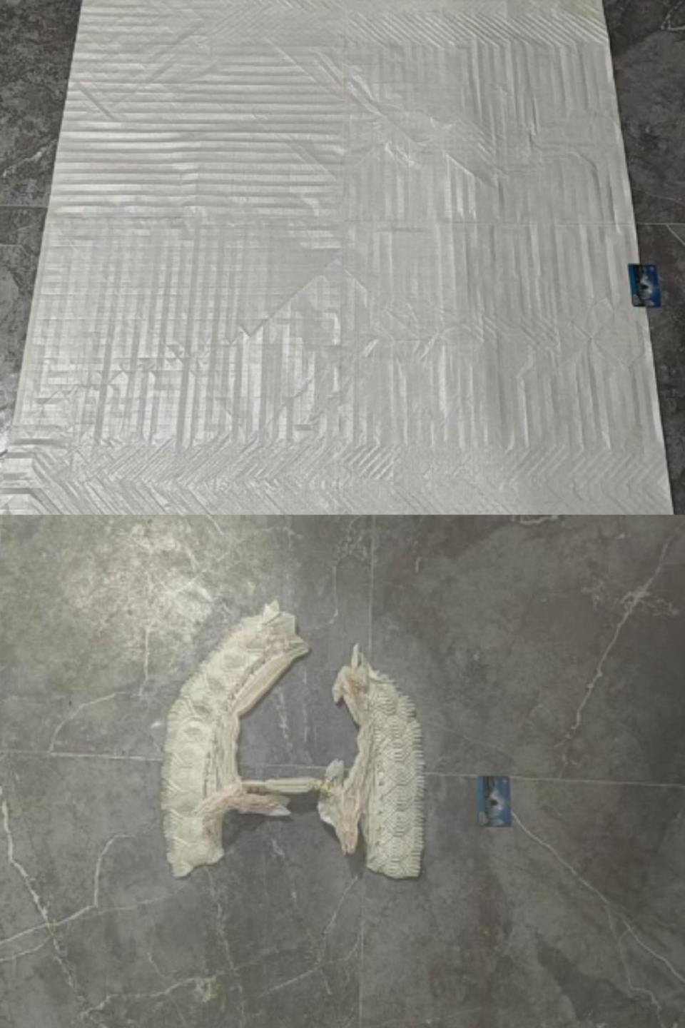 龙身上的鳞片数量超过1400片,每一片都需要用手慢慢折叠而成,从万山河拍下来的记录视频来看,他用牙线辅助,熟练地处理鳞片,完成一片就需要25秒左右。在课余时间陆续把龙鳞全部处理完成,他用了快一个月时间。