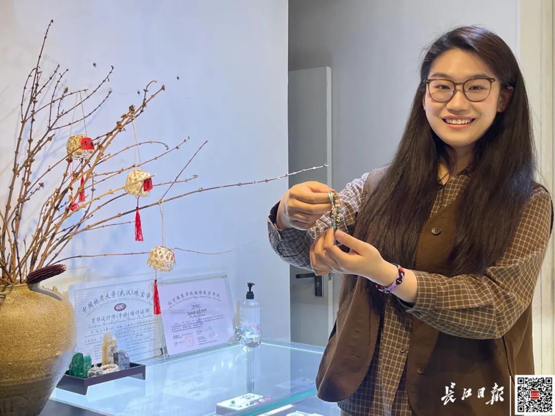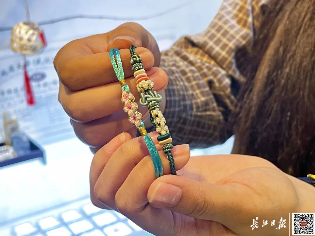 马甜羽展示刚刚编好的樱花手绳。记者刘克取 摄