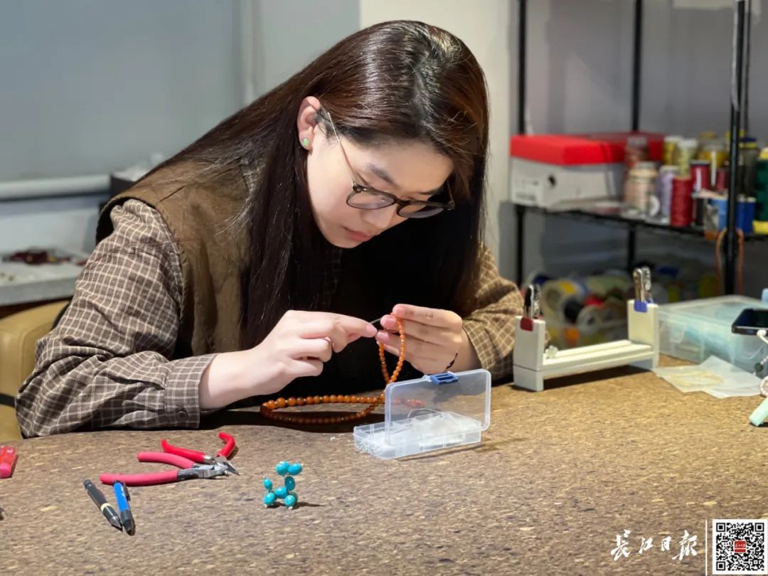 马甜羽在工作台上串珠子。记者刘克取 摄