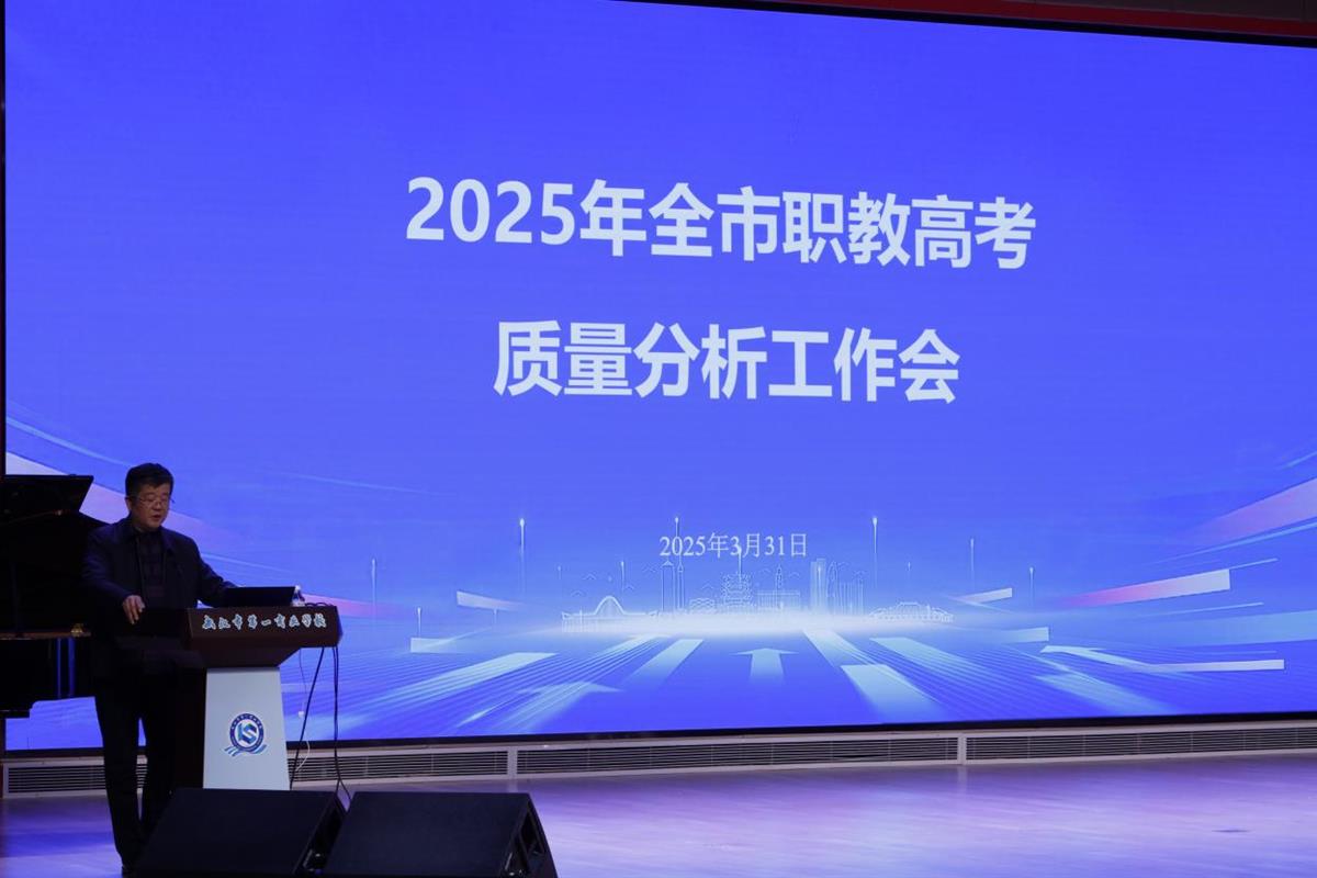市教科院院长丁华锋从教科研角度对2025年全市职教高考质量进行全面分析,并提出针对性改进建议。市教育局副局长陈磊出席会议并发言。