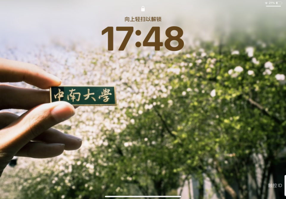 此后的日子,她每天坚持在官微后台留言,表达想要考研成功的信念。一开始,鲁琪更多是靠“记着”,但繁忙的复习也让她险些遗忘。于是,她给自己设定打卡闹钟,并将ipad壁纸换成中南的海棠花图,让每日的开始都会想起这件事。随着时间的推移,打卡这件事也成了习惯。