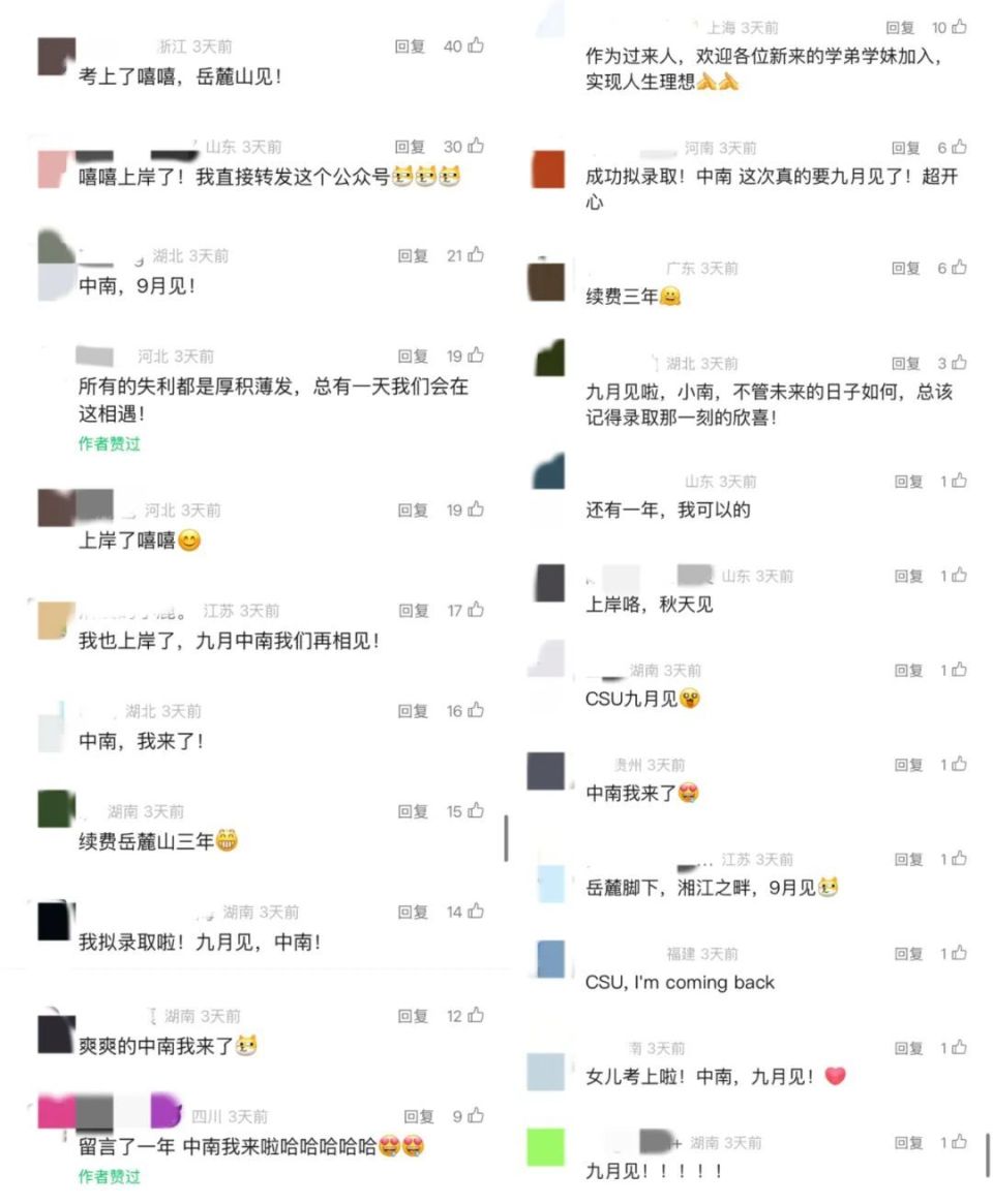 听见大家的好消息,我们也由衷地高兴,欢迎大家成为中南人!