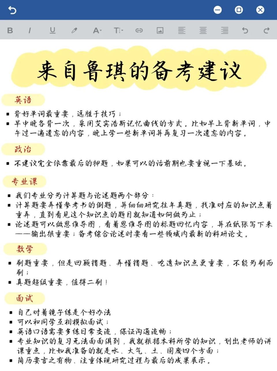 鲁琪的备考建议(仅供参考)