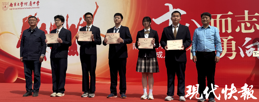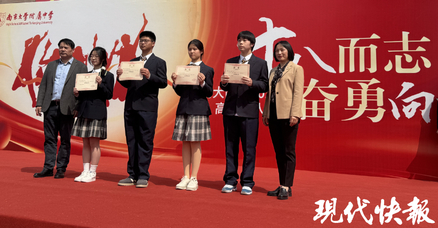 现场,南大附中校领导们走上舞台,为高三年级一模文理科菁英奖和优秀奖获奖的学生们颁发奖状。这场表彰仪式为高三学子们树立了身边的榜样。