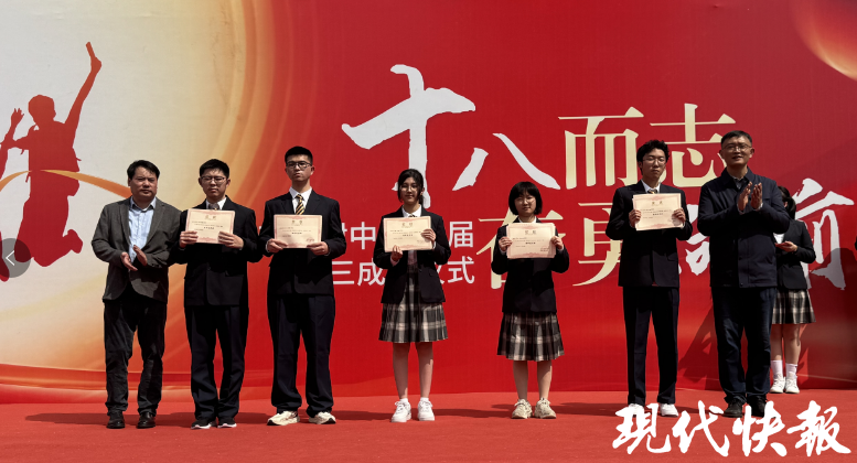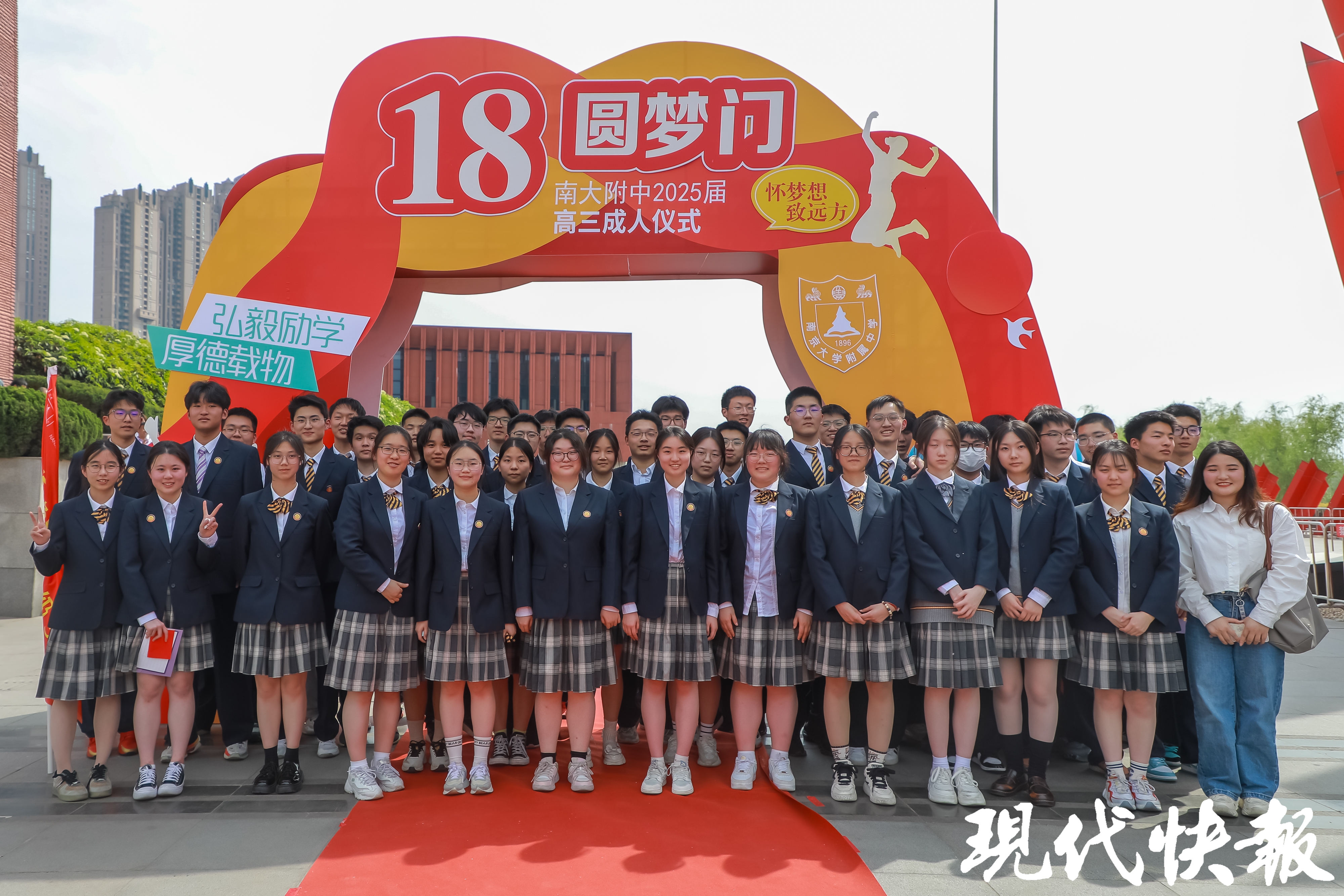 学生在家长的陪伴下,接过成人礼《中华人民共和国宪法》读本、穿过18圆梦门……4月8日下午,主题为“十八而志奋勇向前”的南大附中2025届高三成人礼仪在渡江胜利纪念馆广场庄严举行。南京大学附属中学全体高三学子在老师和家长们的见证下,迈向人生新起点。