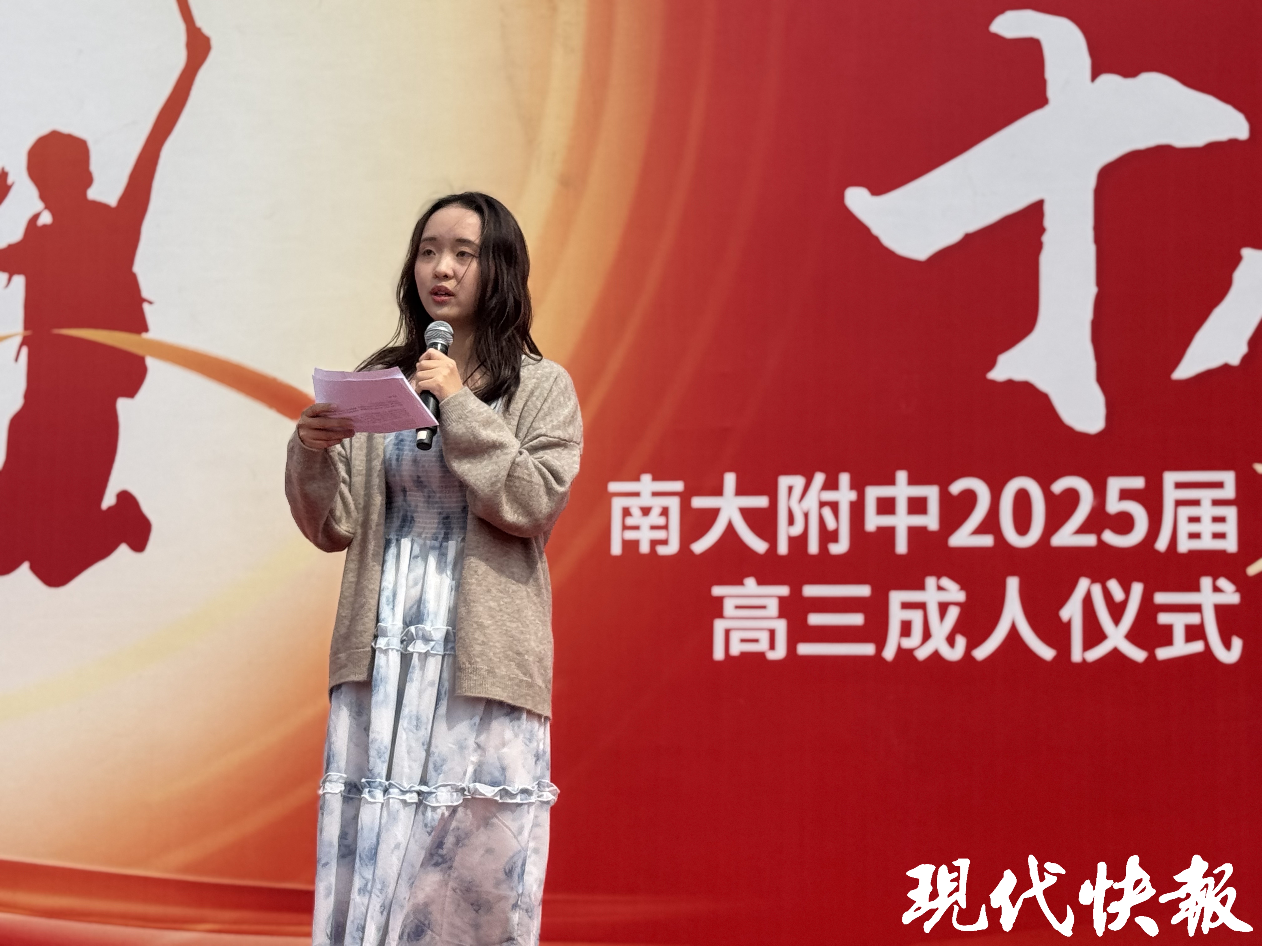家长为孩子别上成人徽章、递上家书,孩子向父母行标准鞠躬礼、送上大大的拥抱。现场,家长代表、高三学生乔劢的妈妈发言时分享了孩子高中期间的变化,“记得乔劢踏入南大附中后,在军训期间参加了军体拳汇报演练,回家后就明显变得更加成熟、努力和自律了。从跨入高中后第一次摸底考试时的数学和语文全班倒数第一,进步到后来的全班总分第一,乔劢仅用了一年不到的时间。”这让她相信,孩子什么时候努力都为时不晚,只要有明确的目标和坚持。她更加相信南大附中是最适合的选择。因为学校良好的学习环境、暖心的人文关怀和老师们无私地关爱与指导,让孩子在成长道路上不断前行,成为了更好的自己。