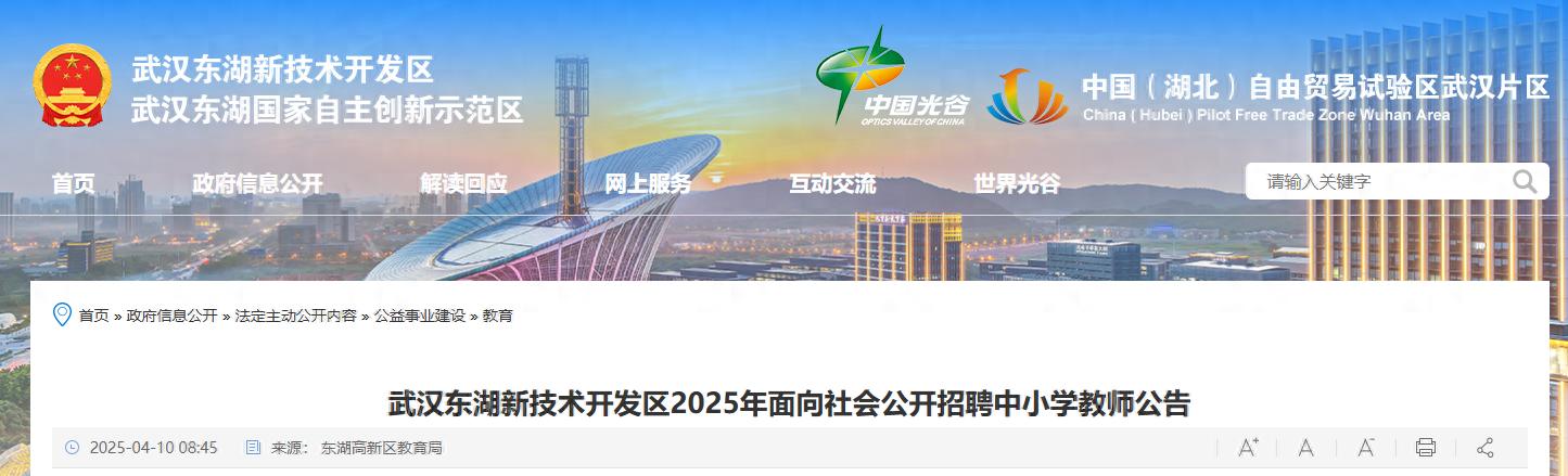 4月10日,武汉东湖高新区教育局发布《武汉东湖新技术开发区2025年面向社会公开招聘中小学教师公告》,公开招聘618名中小学教师,全文如下: