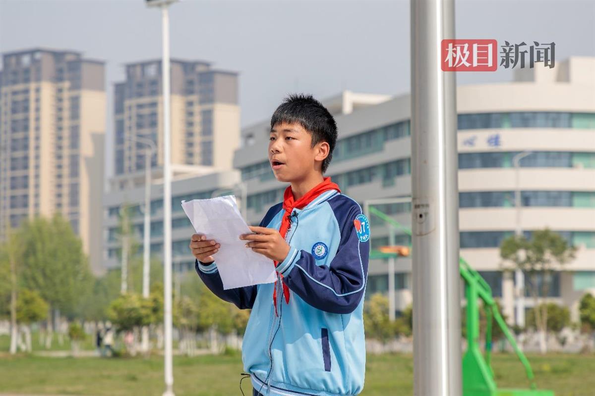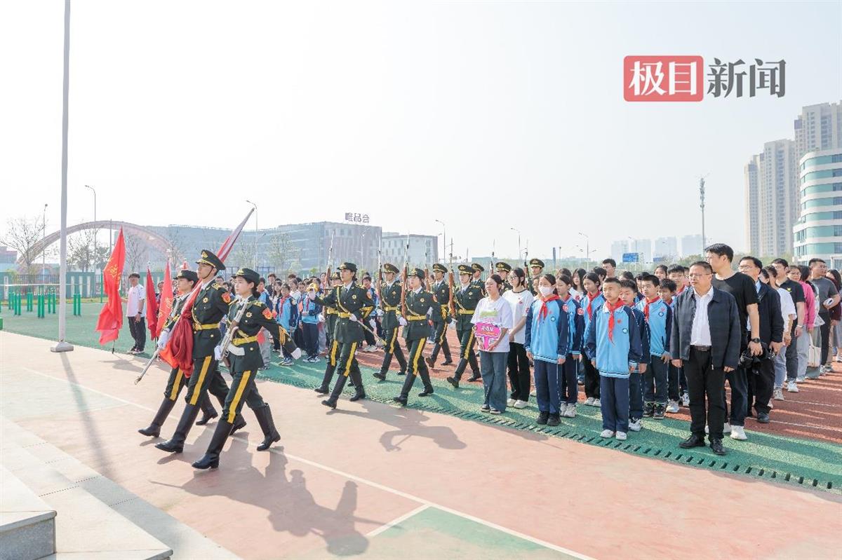 清晨9时,长江职业学院启航楼前,橄榄绿与红领巾共同托起五星红旗。由长江职业学院大学生雷锋连国旗护卫队、花湖先锋青年志愿团与少先队员混编组成的升旗方阵,在雄壮的国歌声中完成这场特殊的仪式。当国旗升至旗杆顶端,实验小学六年级学生蔡其勋在国旗下演讲时难掩激动:“我的家乡鄂州正在长出钢铁翅膀,我要用知识为它插上智慧的羽翼……”