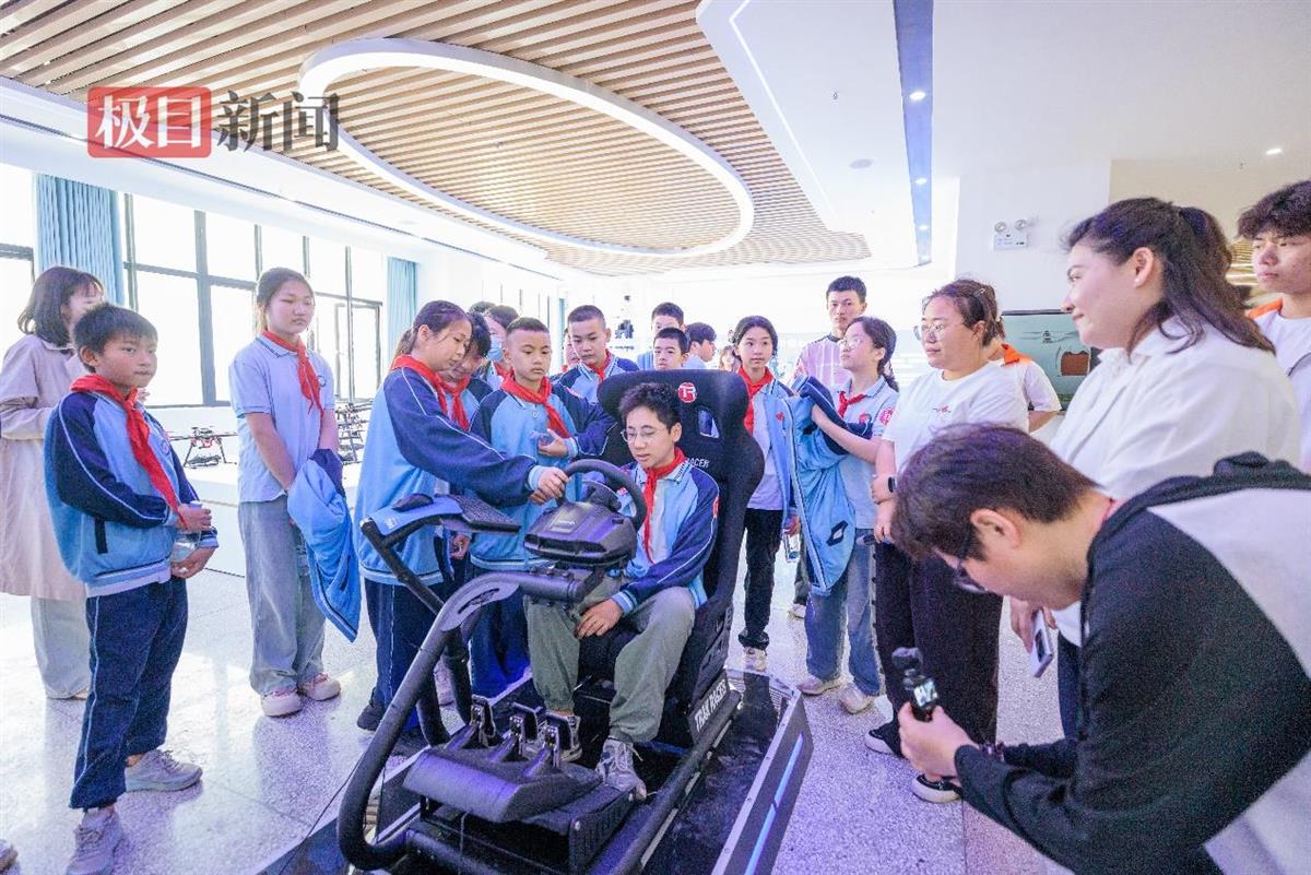 在全场“哇——”的惊叹声中,韩荣带领小朋友们登上无人配送车。随着智能调度舱蓝光闪烁,车辆缓缓启动,涂芷晴扒着车窗大喊:“像变形金刚在送快递!”体验结束后,孩子们围作星星状感叹:“原来科技不是动画片里的魔法,是真实改变世界的超能力!”