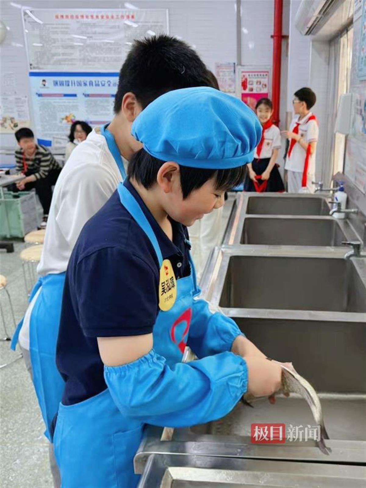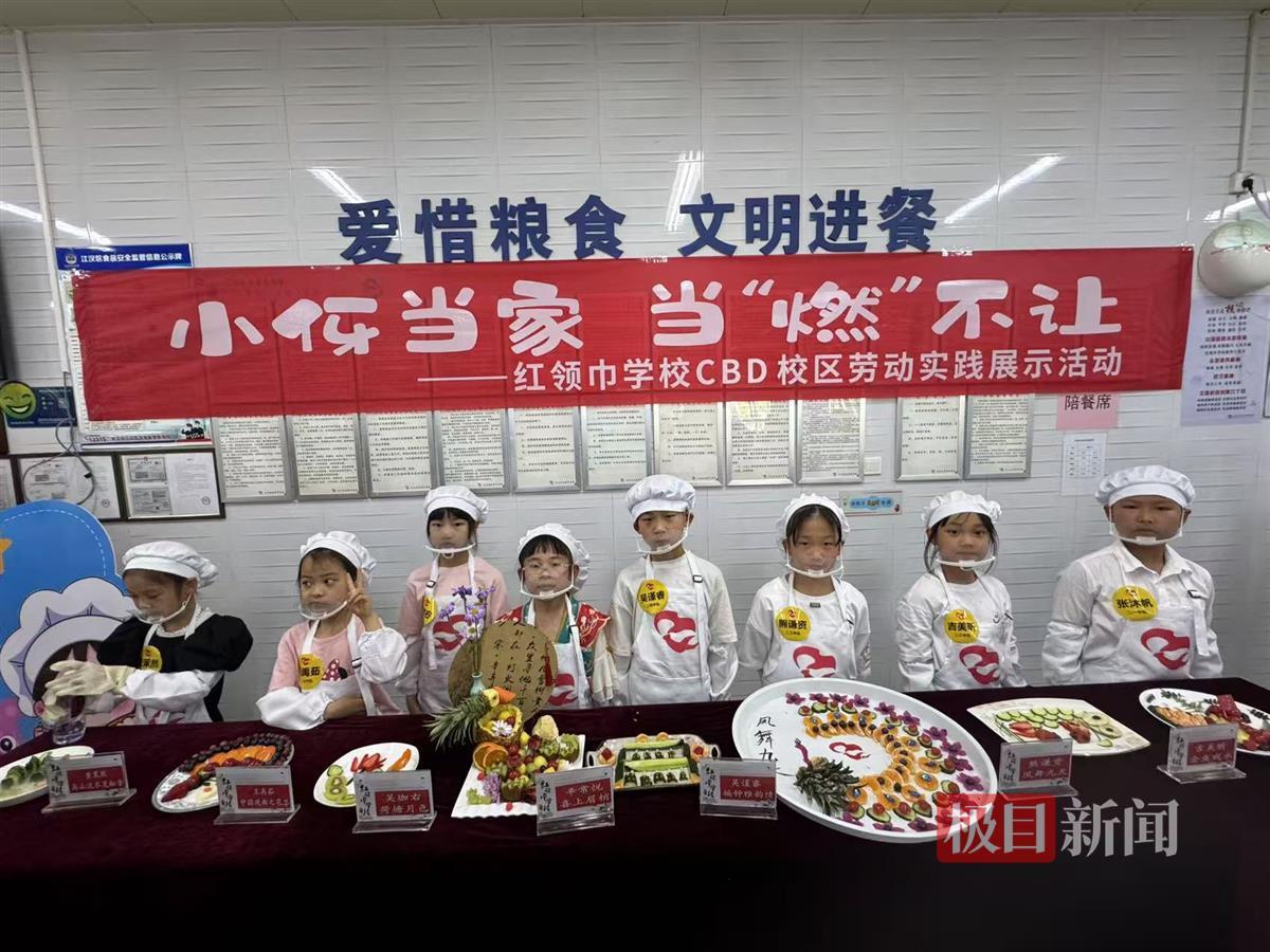 4月10日,武汉市江汉区红领巾学校CBD校区第三届“小伢当家——江汉伢喊你品楚菜”劳动实践展示活动举行。这是该校践行“五育并举”教育理念,充分挖掘劳动教育的育人价值,为学生的成长助力的活动之一,共有22名学生参与角逐,由班级选出代表,食堂师傅、老师代表、家长代表和学生代表组成评委团,最终评出3名“厨神奖”和6名“厨师奖”。