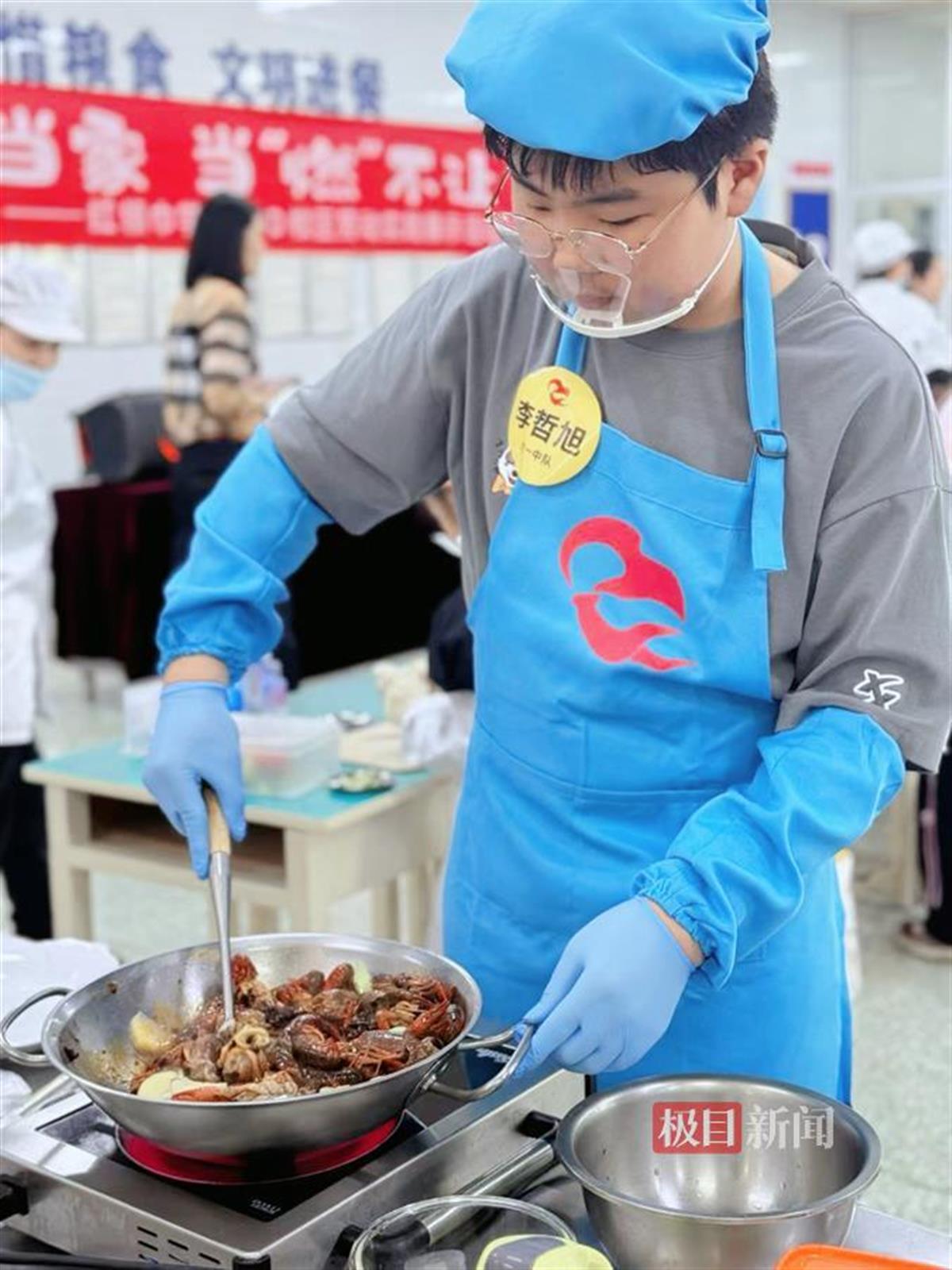 六年级(1)班的学生李哲旭制作的油焖大虾十分入味,一出锅便被师生抢着品尝。“我从四年级就开始学做菜了,为了这次活动,我练习了两天。做这道菜的时候,我炖得足够久,用心去做,还多放了点水,最后用盖子收汁。一开始我还不知道怎么去取虾线,后来发现从虾尾那里抽出来就行。”李哲旭自信地分享着自己的做菜经验。