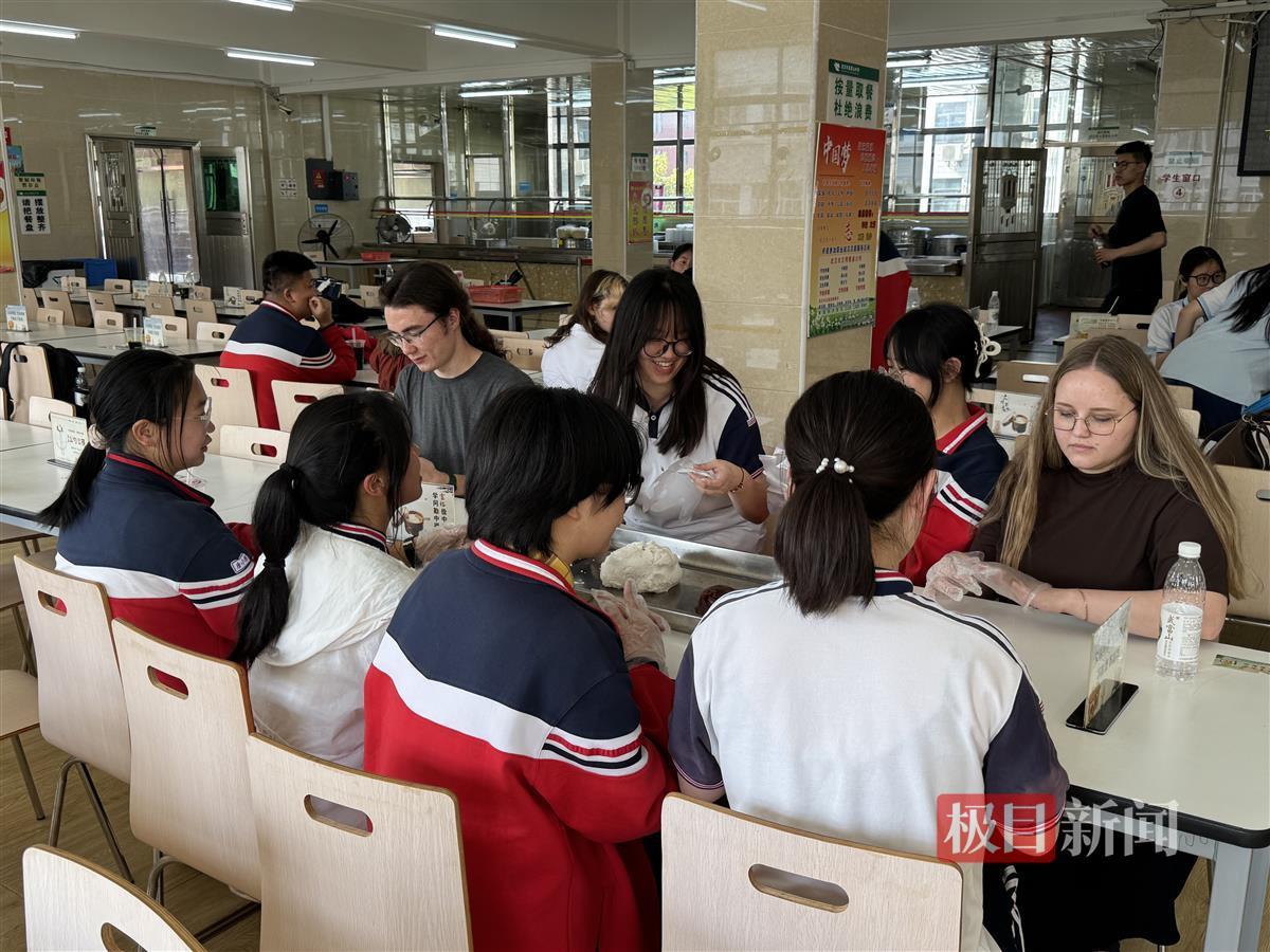 走进吴家山中学食堂,工作人员早已准备好包汤圆的糯米粉和各种馅料,让学生们兴奋起来。中俄学生交叉分组,中方学生一边示范一边介绍汤圆的内涵:“汤圆在中国文化中象征着团圆、包容、幸福与美满。”俄罗斯学生有模有样地包起汤圆来,欢声笑语不断。
