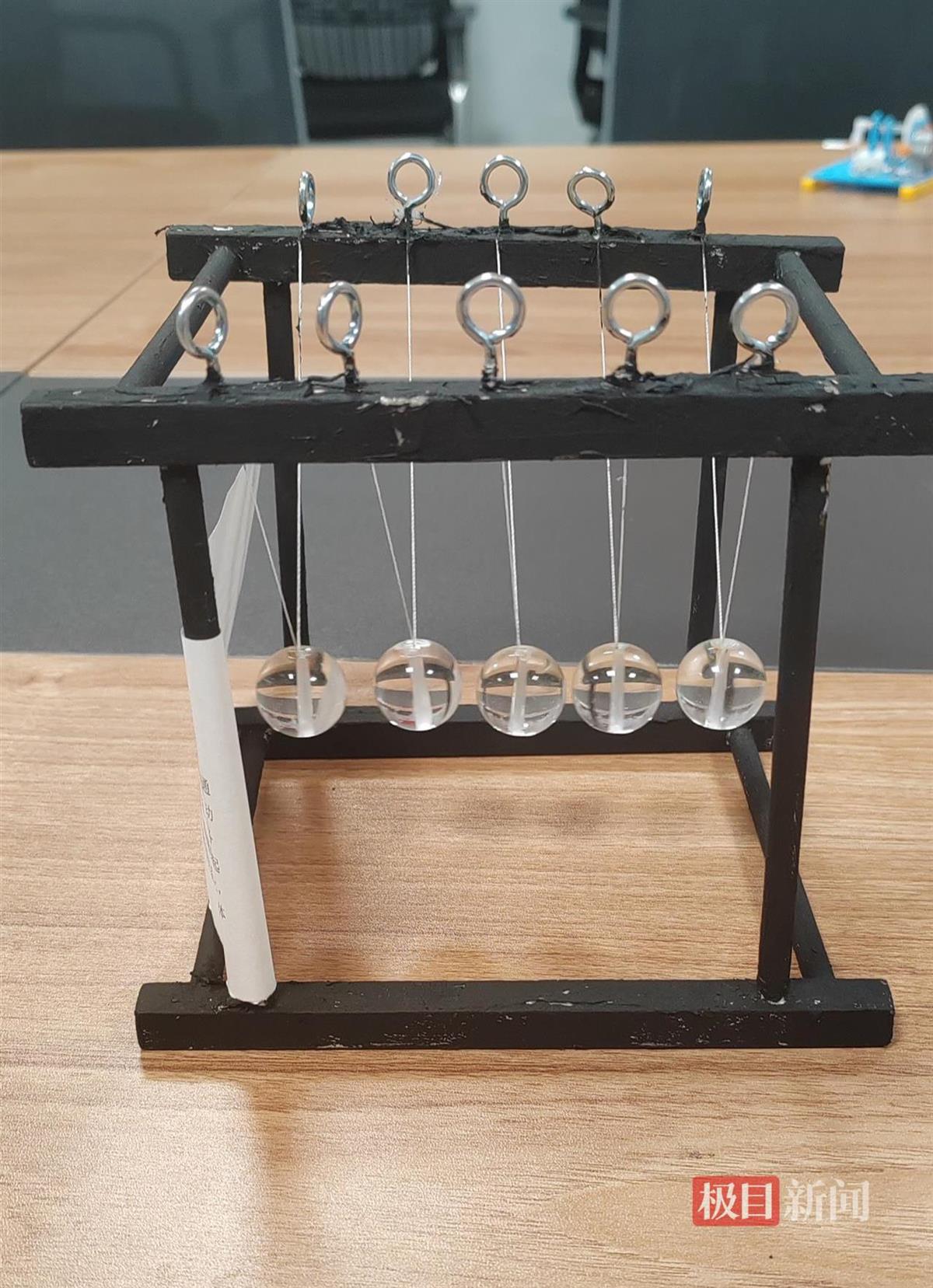 本次大赛特设“回归课本”创作要求,获奖作品皆紧扣教材原理。“例如高一(2)班曹艺萱的《反冲小车》,仅用电池、风扇和纸板便演绎了牛顿第三定律;高一(9)班张宝之调整单摆间距时,笔记本上密密麻麻的计算公式正是课堂内容的延伸。我们鼓励学生用薯片罐做线圈、用吸管当输油管”,物理老师邓艳平表示,“当学生发现知识能变成触手可及的作品,学习就拥有了内生动力”。