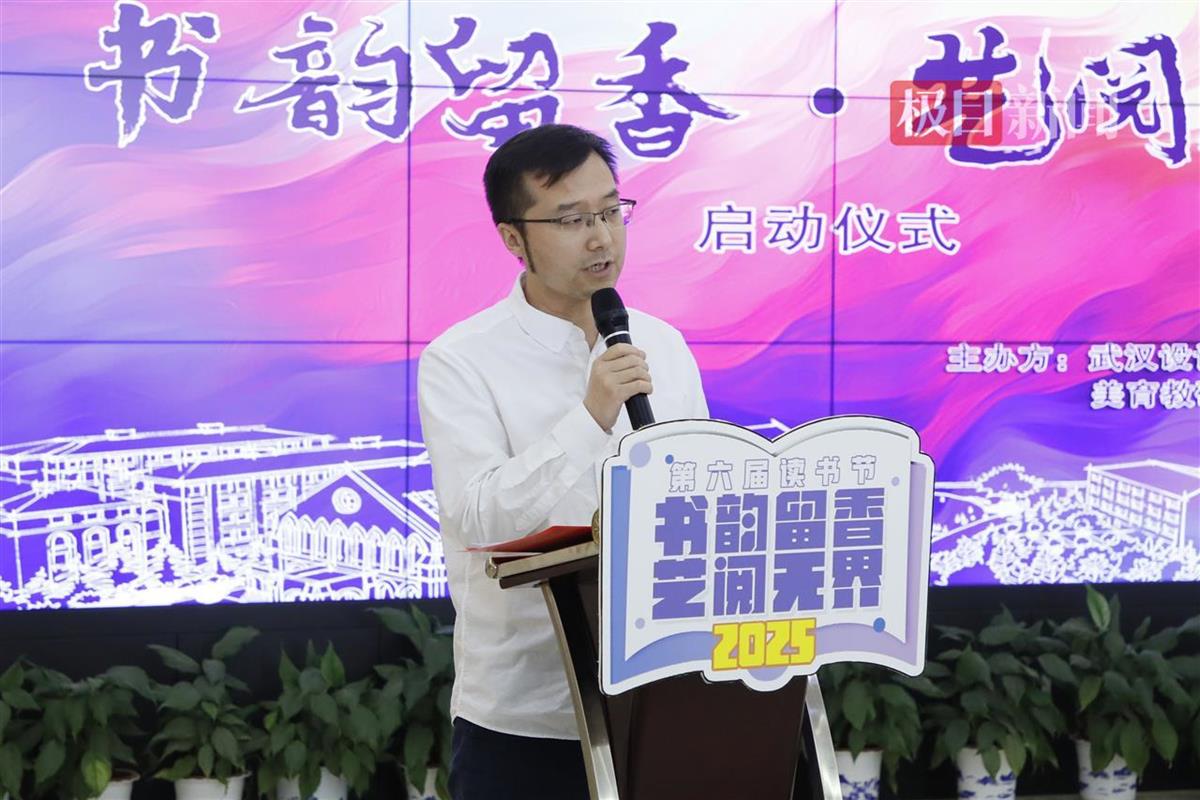 图书馆馆长杨文静以《美育浸润背景下的“艺术与阅读”探索》为题,分享了图书馆坚持践行“读者第一、服务至上、书香校园”理念的生动探索与实践。她介绍,本届读书节立足新时代美育要求,由图书馆联合美育教育室共同举办,主题为“书韵留香·艺阅无界”,既是对党的二十大“弘扬中华美育精神”号召的积极响应,更是武设艺术基因的创造性表达。她号召全校师生以开放的胸襟拥抱阅读,在“艺术与阅读”的探索中,收获属于自己的文化顿悟,在美育的浸润中蜕变成长。