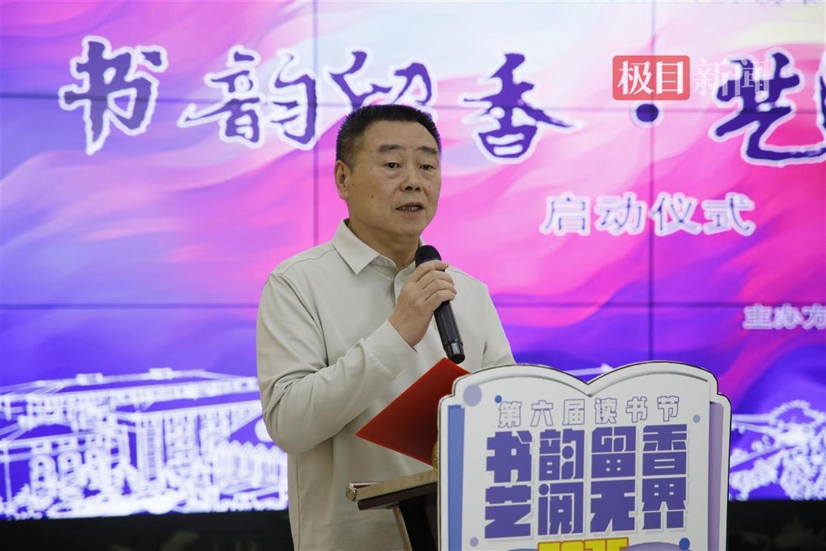 龚少平在启动仪式上致辞。他在讲话中预祝读书节取得圆满成功,并充分肯定了书香校园的建设成效。他表示,艺术启迪智慧,阅读滋养心灵,本届读书节主题充分彰显了学校“以美育人、以文化人”的办学特色和文化育人品牌,“艺术与阅读”相结合的这种浸润式育人模式,正在塑造武设人厚德尚美的独特气质。他要求各学院以读书节为契机,在书香校园建设中树立典范、激发活力,深化文化育人实践,希望全体师生共同推动书香校园建设,在文化传承中勇担时代使命,在书香与艺术的美好邂逅中收获成长与快乐。