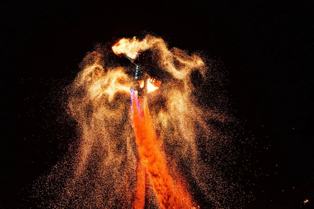 双手提着40多斤重的火壶,火焰温度超800℃……徐国磊在水上边“飞”边舞。他带着传统非遗“火壶技艺”与现代极限运动“水上飞人”亮相2025年央视春晚重庆分会场。