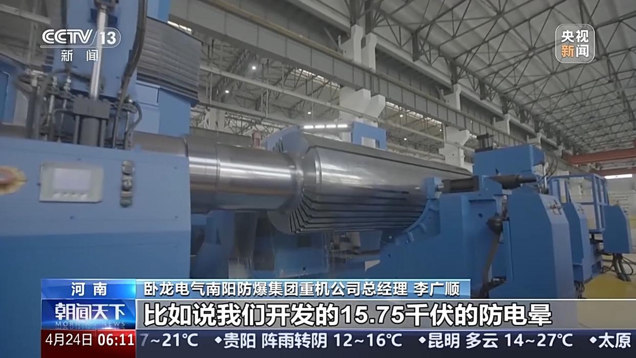 卧龙电气南阳防爆集团重机公司总经理 李广顺:电机在这么小的体积之内又集成了这么多功能,这里边有很多的工艺创新,比如15.75千伏防电晕和全海拔覆盖情况下的绝缘技术。