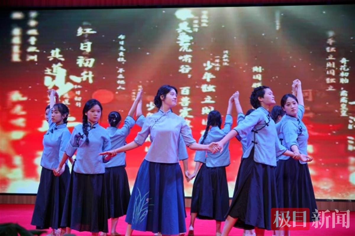 活动以师生诵读形式,通过古今经典诗词、“为民族复兴而读书”主题篇章、《青春之歌》经典段落节选等版块设置,将千年文脉与时代强音交织,于诵读声中交融共鸣。