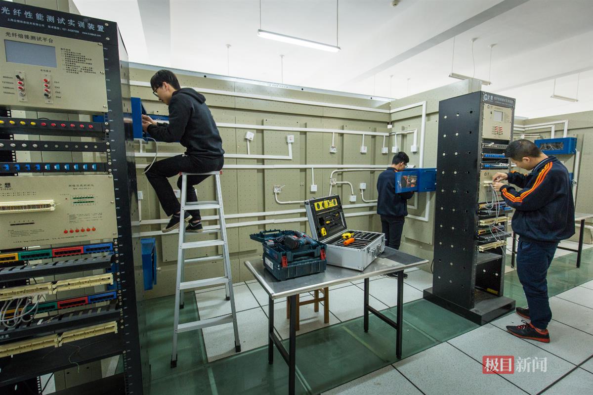 武汉市第一职业教育中心学生正进行网络综合布线实训