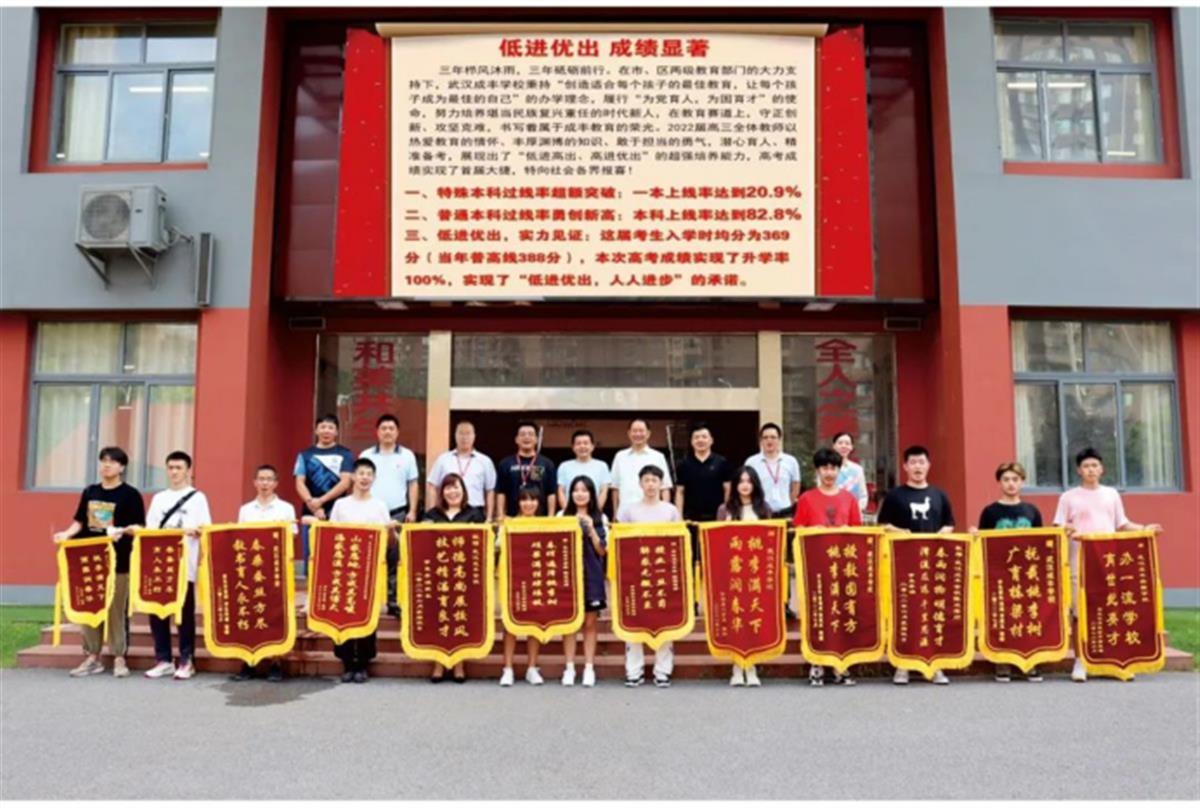 学校实施人才强校战略,所聘教师大学本科学历100% ,名校研究生学历30% ,学校教师以“骨干教师”和“学科带头人”为主,师资团队豪华阵容,领跑同类学校。学校以“教依德成,学以志丰”为校训,坚持“德智双全,身心两健”的育人目标,实行“封闭管理,开放教学”的办学模式,从爱出发,从严入手,力求“低进高出,高进优出”,“个个成人,人人成才”。建校以来,学校严格的管理、良好的校风、浓厚的学风得到了学生和家长的高度认可,教育教学取得了令人瞩目的成果。近几年高考升学率节节攀升,2023年高考一本上线率22.7%,本科上线率83.6%;2024年,学校高考成绩再上新台阶,一本率26.3%,本科率81.9%。郑慧妮、谢可同学分别被武汉大学和华中科技大学录取。