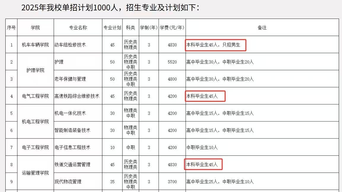 近日,一条“本升专”的消息引发网络热议。根据郑州铁路职业技术学院发布的2025年单独考试招生章程,其中动车组检修技术、高速铁路综合维修技术和铁道交通运营管理专业,面向本科毕业生招生,计划招生135人,毕业后发放专科毕业证。