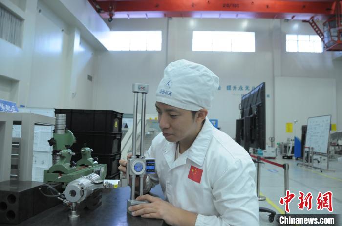 资料图:赵杰在装配区进行测量工作。(中国航天科技集团八院149厂供图)