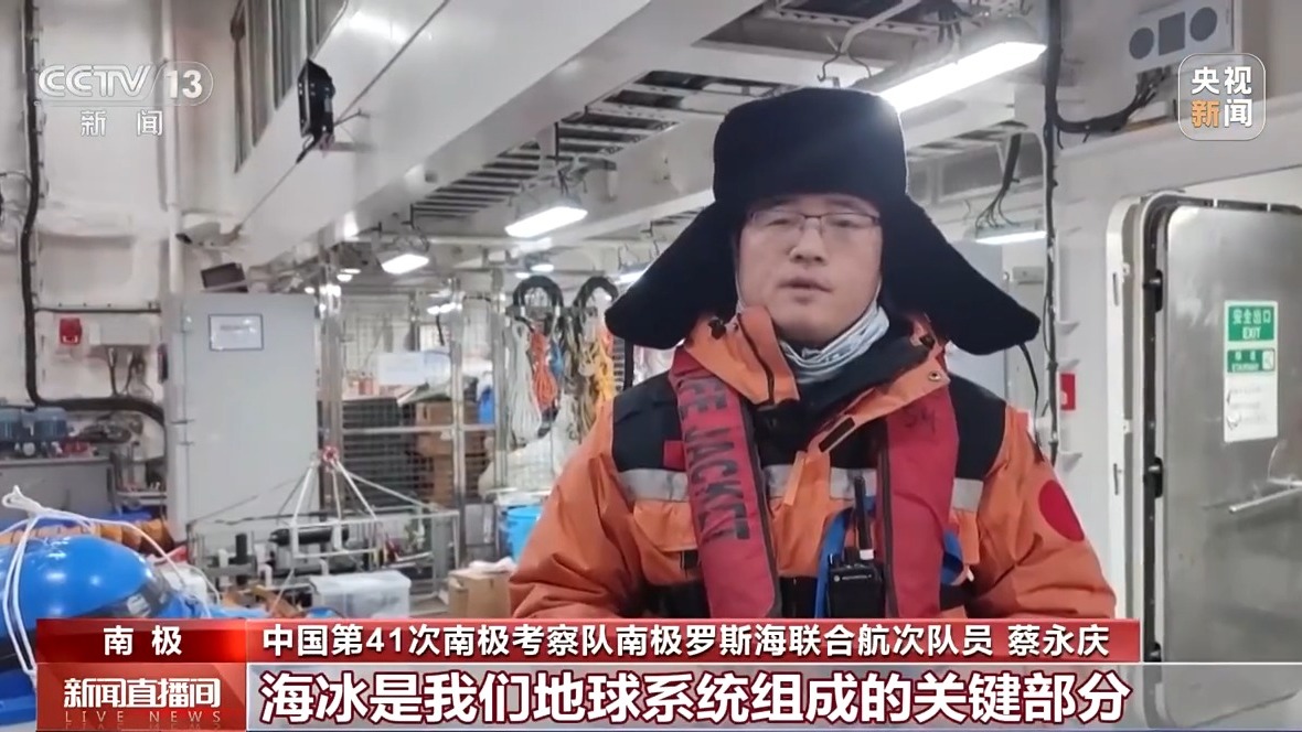 中国第41次南极考察队南极罗斯海联合航次队员 蔡永庆:海冰是我们地球系统组成的关键部分,对我们地球的能量平衡,有非常深远的影响。它以高反照率将大量的太阳辐射返回太空,会有效降低极地的升温。另外一个方面,它作为大气与海洋一个天然的屏障,可以调控它们之间的热交换,从而影响大洋环流和地球气候系统。