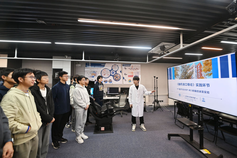 实验员在天津大学脑控系统研发与集成应用实验室内给学生授课。新华社记者李然摄 (2024年11月15日摄)