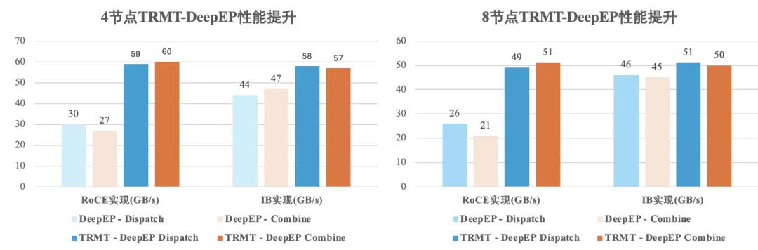 在腾讯的技术优化下,DeepEP不仅在RoCE网络实现性能翻倍,反哺到IB(InfiniBand)网络时更使原有通信效率再提升30%。