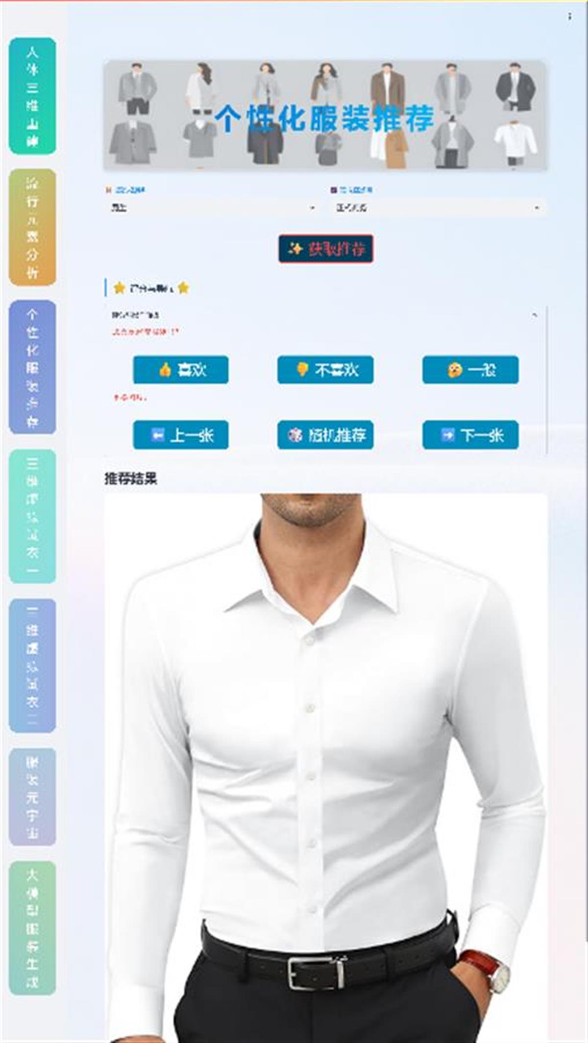 该校研发团队成员余锋告诉极目新闻记者,平台共有人体三维重建、个性化服装推荐、三维虚拟试衣和服装元宇宙四个功能。其中,人体三维重建功能可通过算法为站在平台前的人快速完成三维重建;个性化服装推荐能根据不同场景和细节提供精准搭配建议;而三维虚拟试衣功能更是亮点,能将学生的设计草图转化为逼真的试衣效果,完美展现面料特性和印花手法。