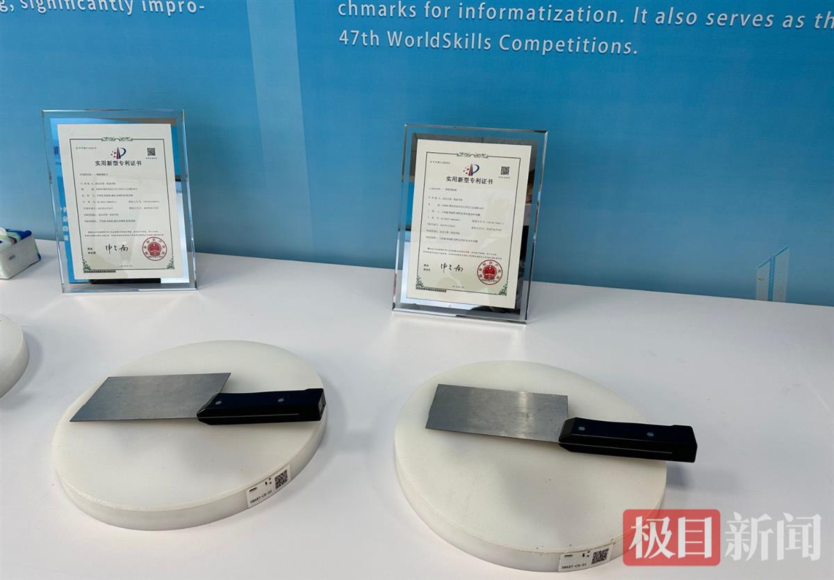 走近学校的烹饪设备展台,智能刀功训练系统格外引人注目。这套由学校师生在2023年研发、并获得专利的系统,被一商校的师生称为烹饪基本功和刀工训练的“秘密武器”。