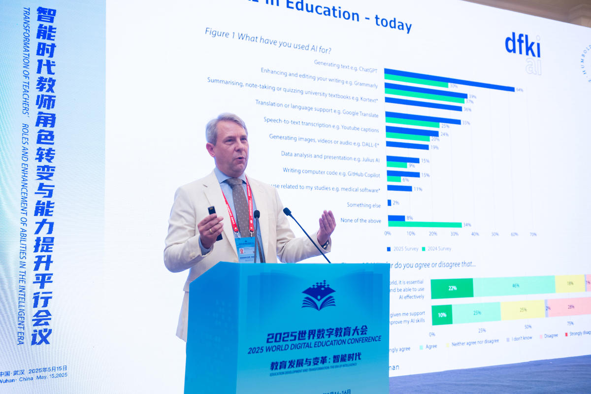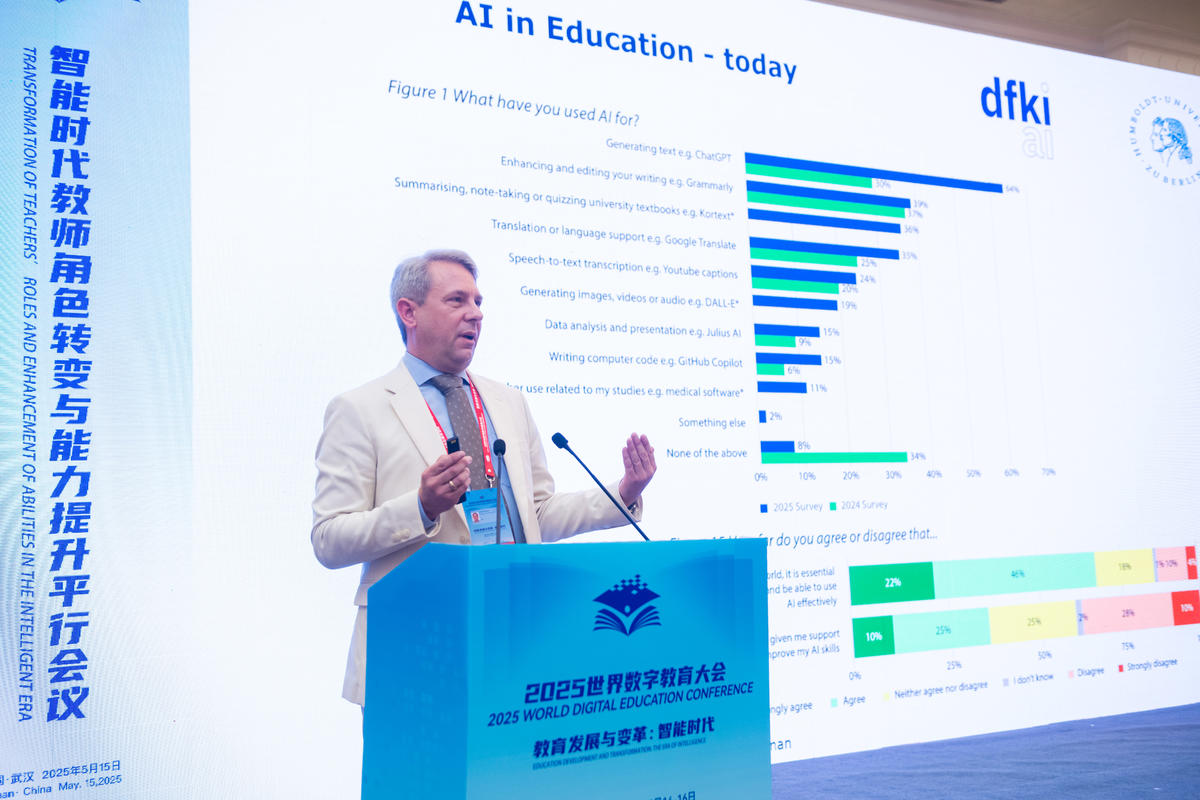5月15日,在2025年数字教育大会平行论坛现场,德国柏林洪堡大学副校长、教授尼尔斯・平克沃特接受极目新闻记者采访时表示,他非常喜欢武汉。他回忆道,上次到访武汉还是六年前,如今能够再次回到这里,感到十分开心。他还现场学说“爱湖北”“爱武汉”。