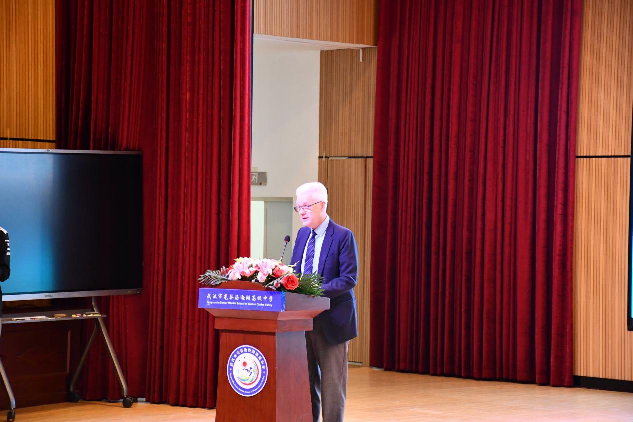 为激发青少年科学兴趣,点亮“世界光谷”创新星火,5月15日上午,光博会院士专家校园科普行活动在武汉市光谷汤逊湖高级中学隆重举行。英国皇家工程院院士、剑桥大学原副校长、巴斯大学校长伊恩·怀特教授与剑桥大学王昊博士为师生带来一场前沿科技讲座。